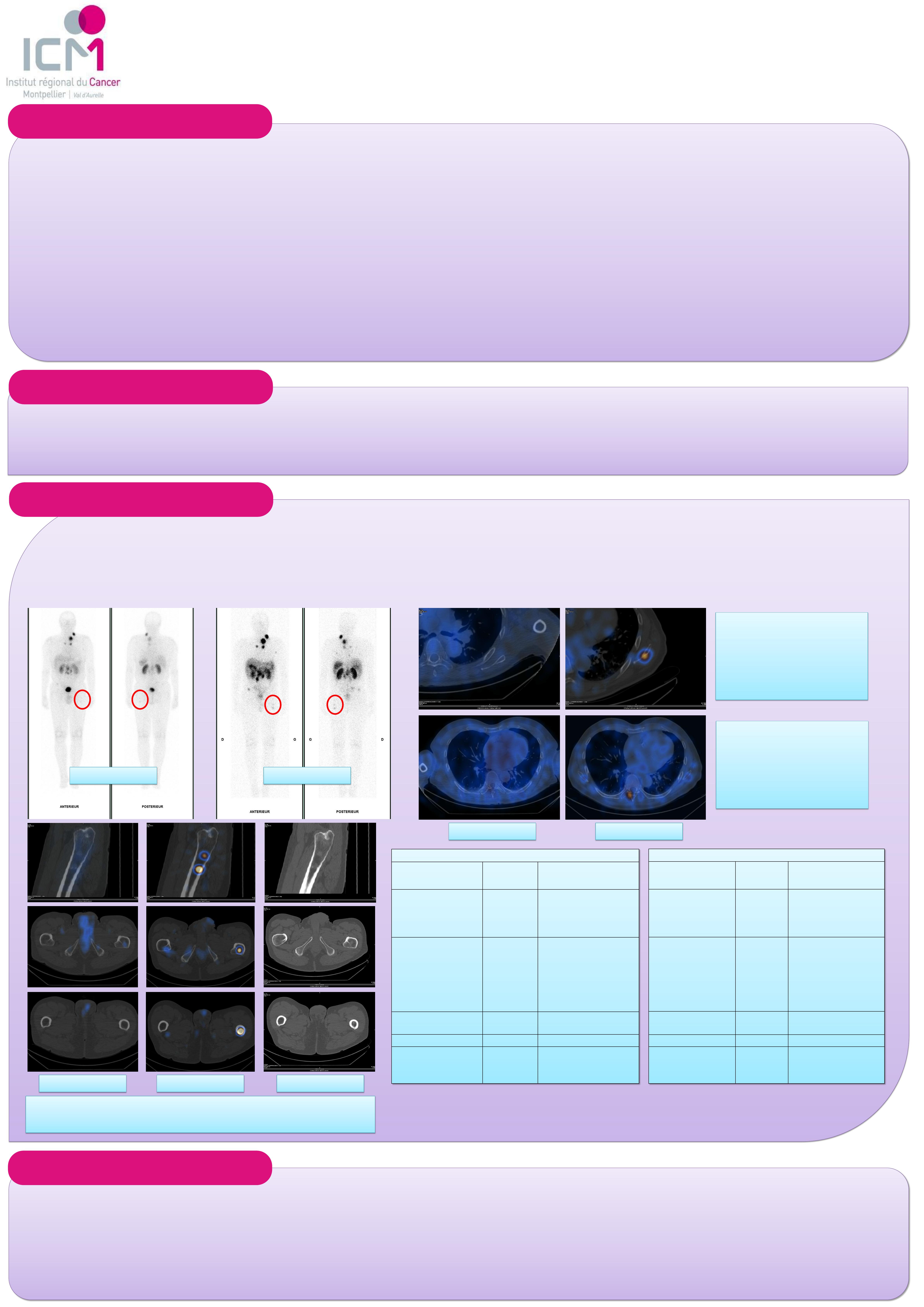 sur 20, les acquisitions de H24 ont permis d’identifier de nouvelles localisations osseuses secondaires : scapulaire, rachidiennes et fémorales pour le