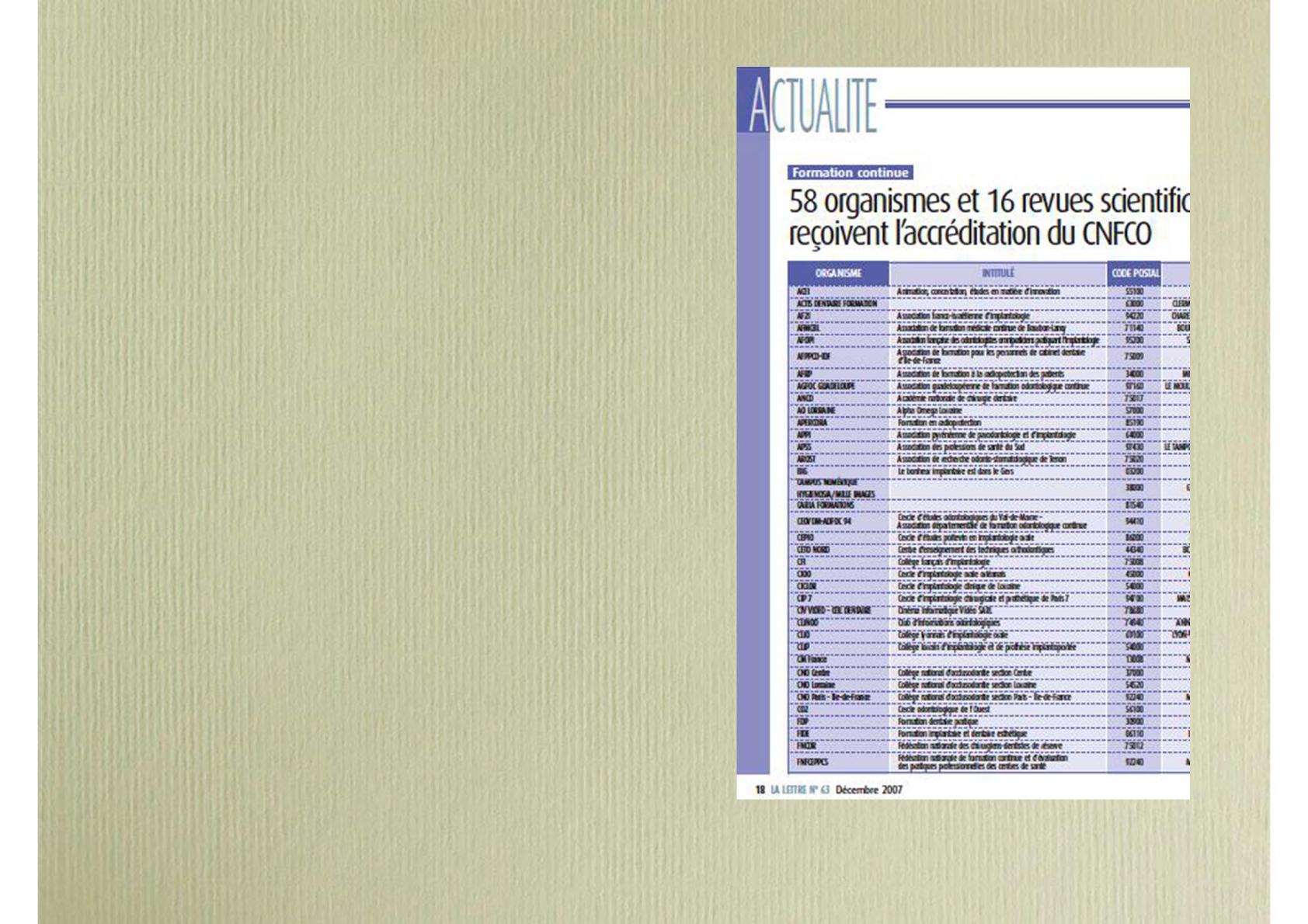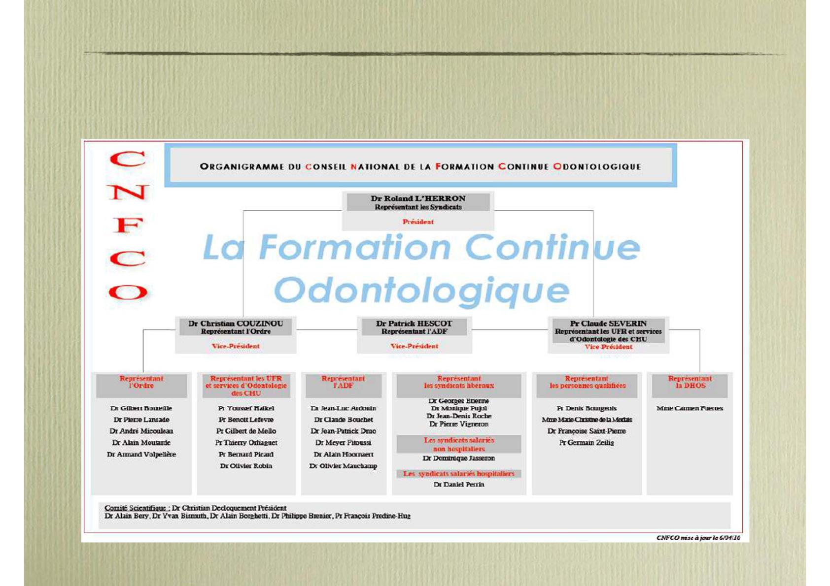 Les acteurs de la FC en odontologieLes acteurs de la FC en odontologie