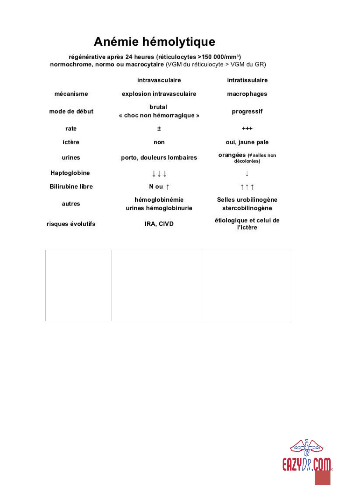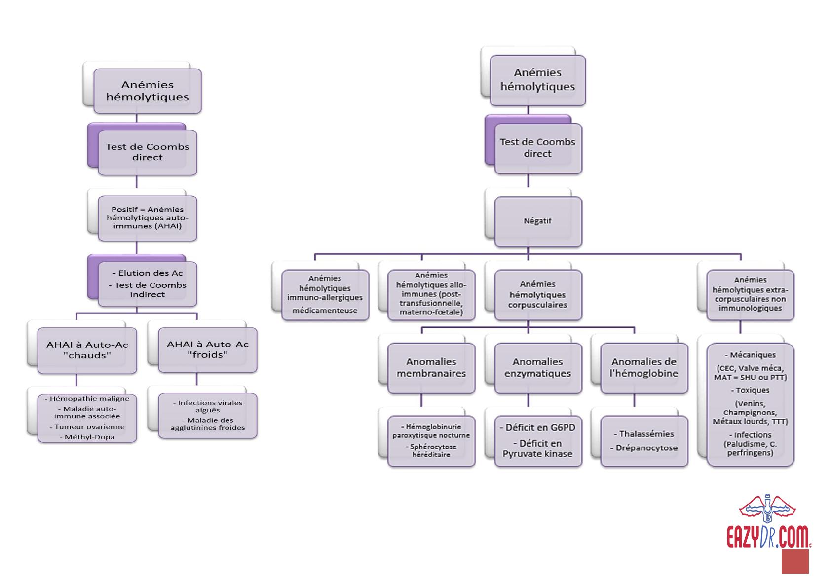 C. Signes d’hyperhémolyse : Haptoglobine + ↑BNC + ↑Fe sérique + ↑ ferritine sérique