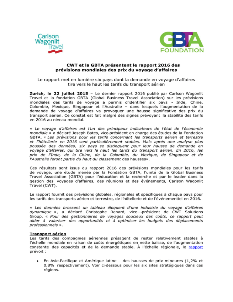 www.carlsonwagonlit.ch. Suivez-nous sur Twitter @CarlsonWagonlit.