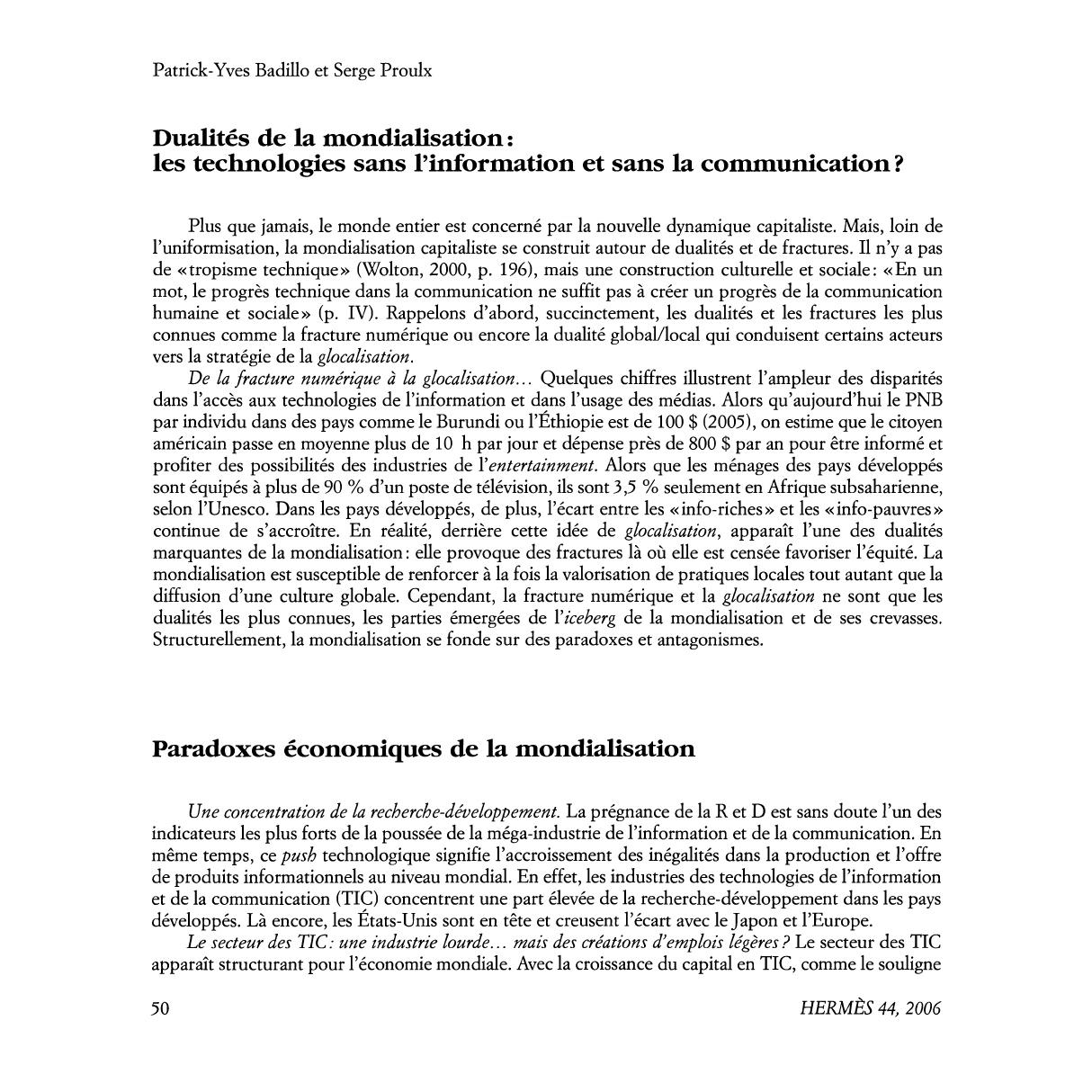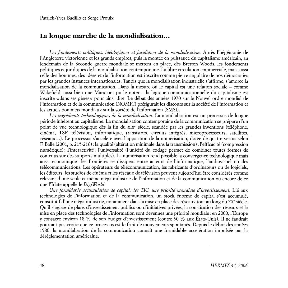 période inhérent au capitalisme. La mondialisation contemporaine de la communication se prépare d'un