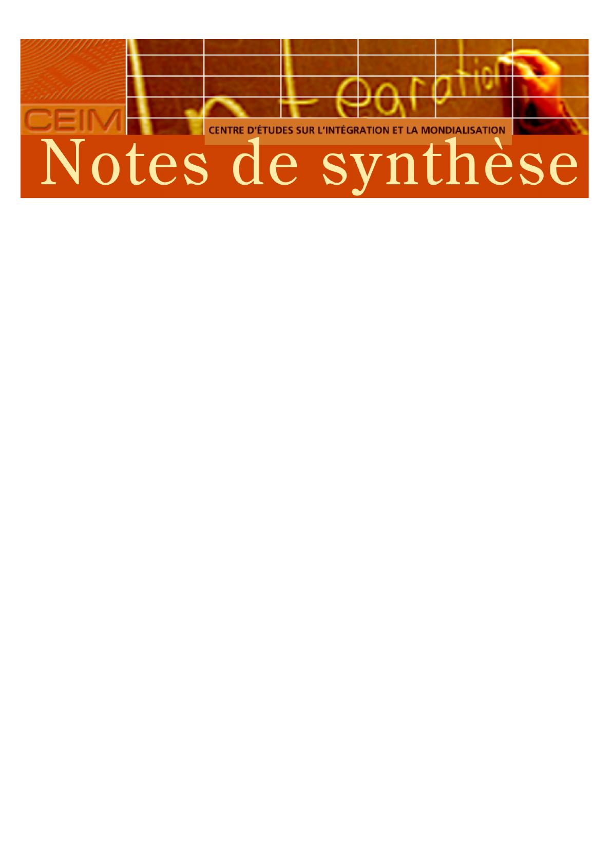 note de synthèse porte principalement sur cette