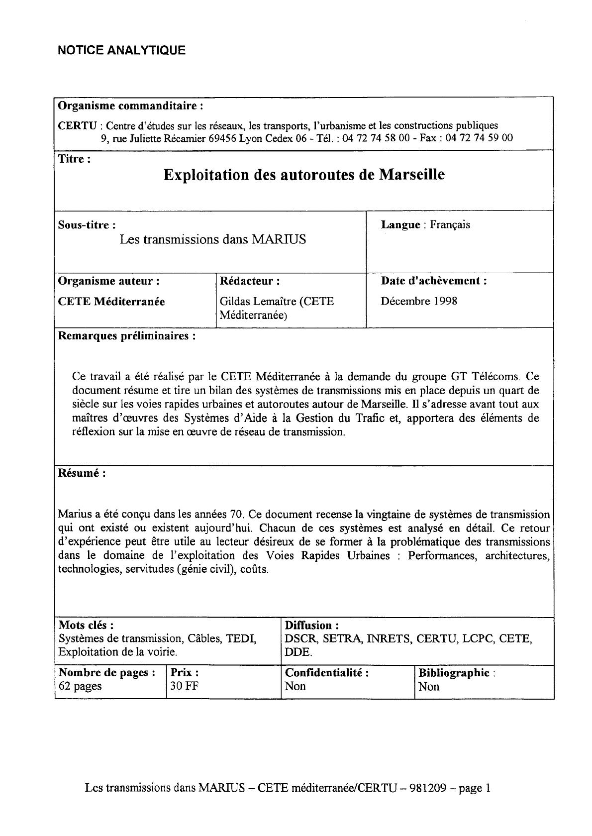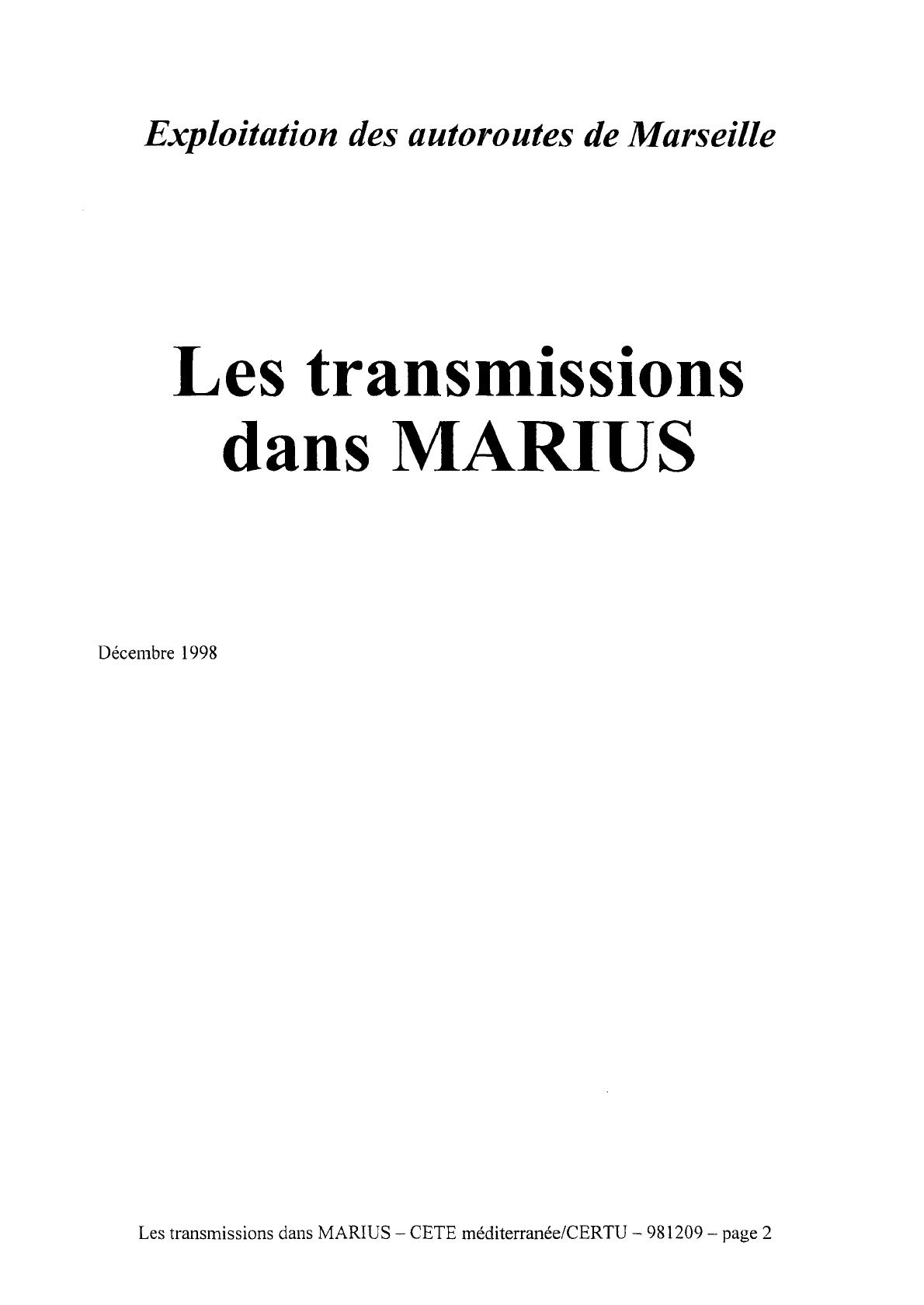 Les transmissions dans MARIUS – CETE méditerranée/CERTU – 981209 – page 1