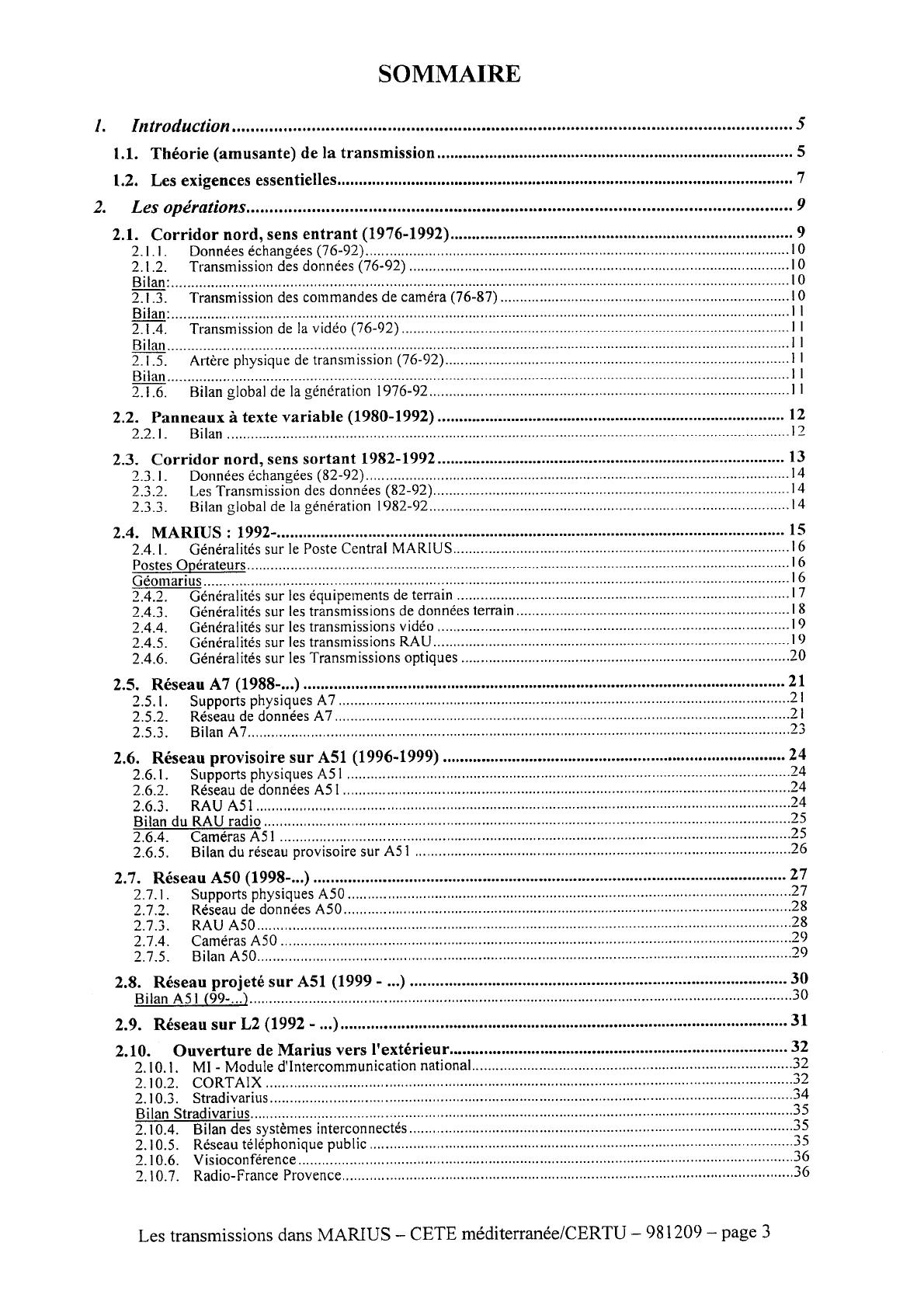Marius a été conçu dans les années 70. Ce document recense la vingtaine de systèmes de transmission