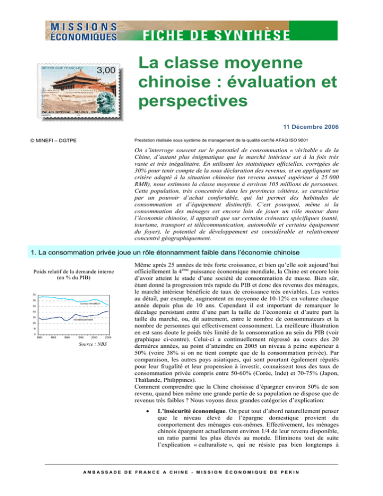 L a c l a s s e m o y e n n e c h i n o i s e – 1 1 / 1 2 / 2 0 0 6 © MINEFI - DGTPE