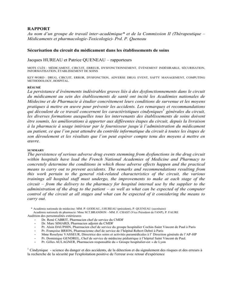 d'un évènement indésirable survenu dans le circuit du médicament. Ce qui est cherché dans ce rapport c'est la prévention de l'évènement