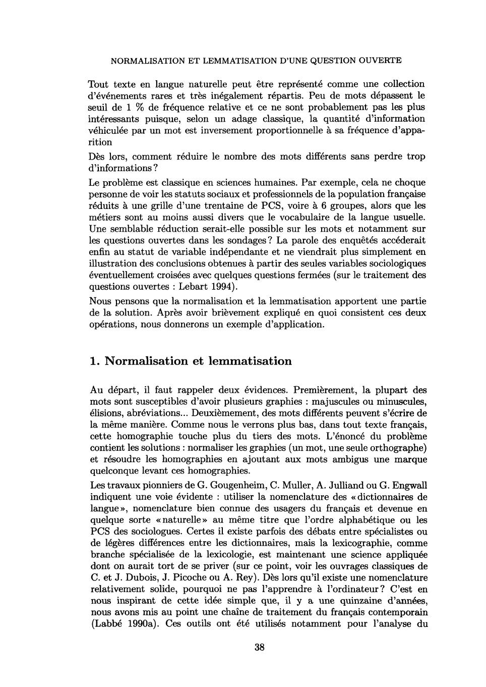 (Labbé 1990a). Ces outils ont été utilisés notamment pour l'analyse du