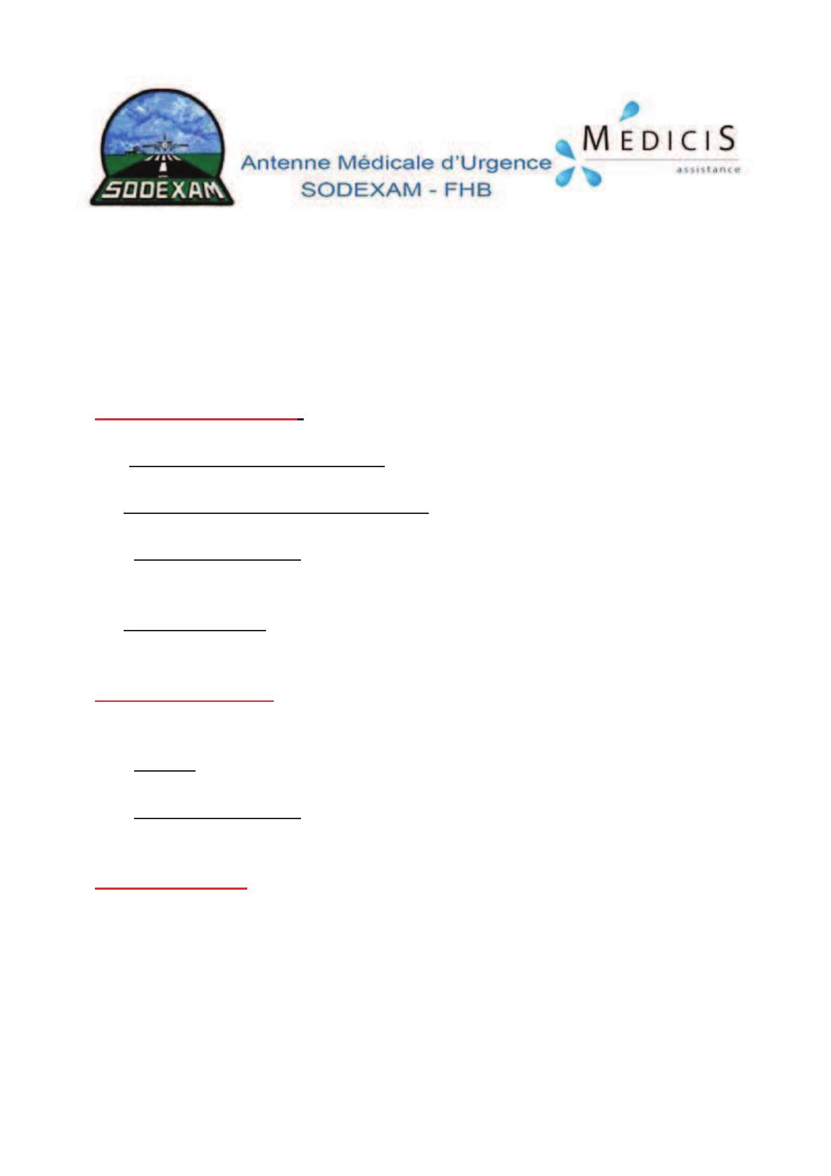1- Poste Médical Avancé au sein de l’aérogare organisé comme suit :