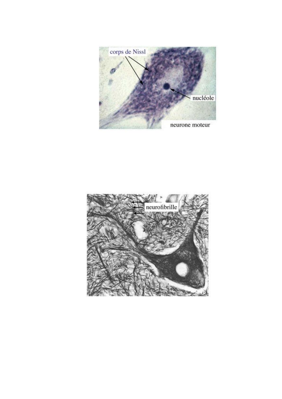* la présence de mottes basophiles, les corps de Nissl,