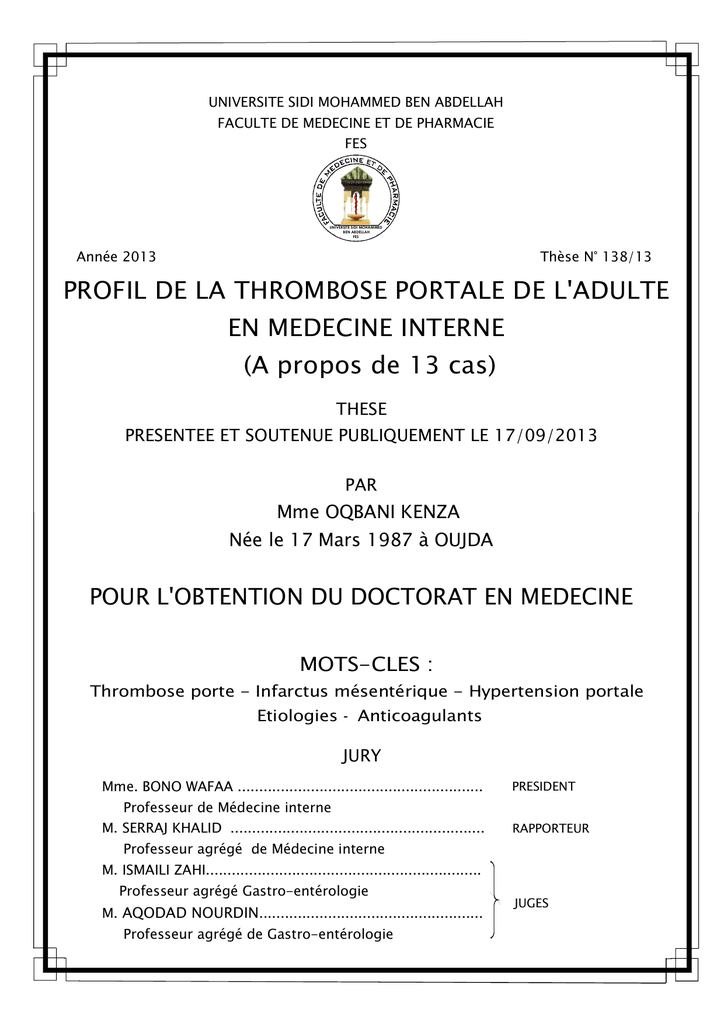 8.3. Thrombose porte et grossesse.......................................................... 61
