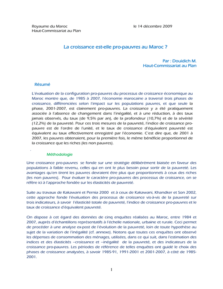 Nous en retenons que le processus de croissance 1985-2007 est d’autant plus pro-pauvres