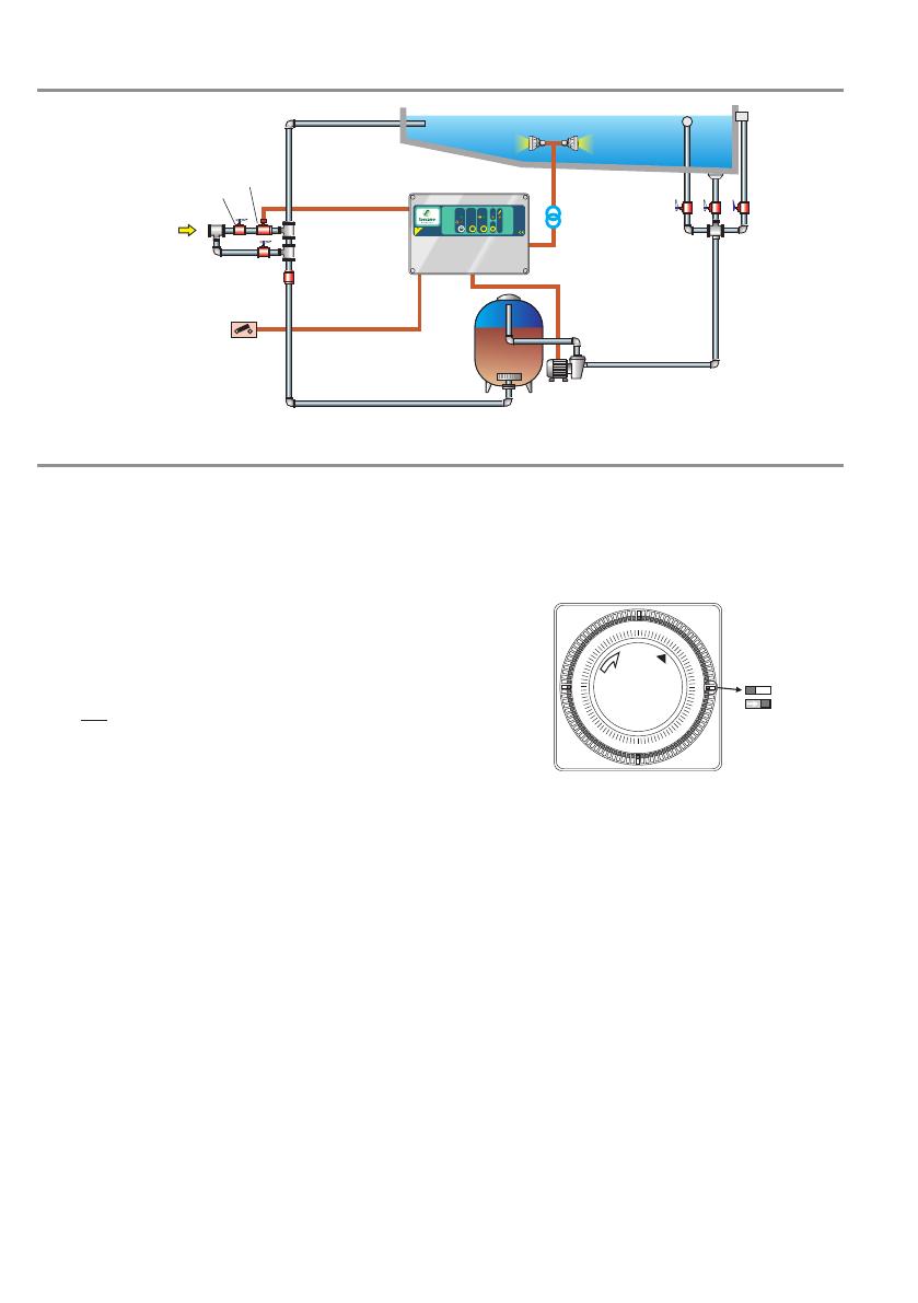 L’installation doit être pourvue pour cela d’une deuxième arrivée d’eau (voir diagramme en page 3), montée en parallèle au réseau principal et connectée soit directement au bassin