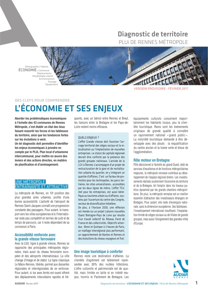 Diagnostic de territoire / L’ÉCONOMIE ET SES ENJEUX / PLUi de Rennes Métropole 3AUDIAR février 2017