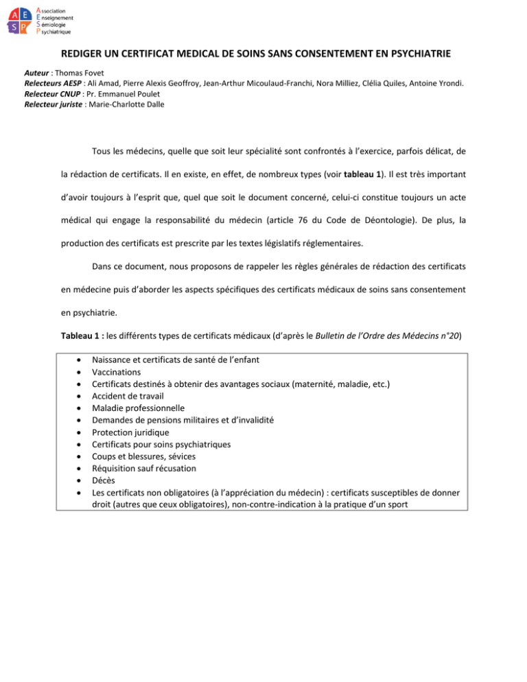 civile (PEJC) - mars 2014). L’enjeu de la qualité de rédaction des certificats médicaux de soins sans