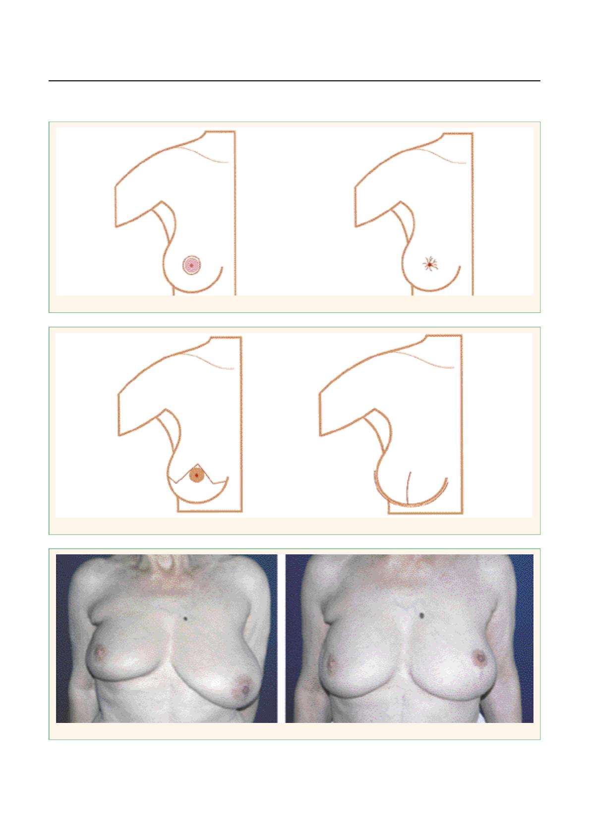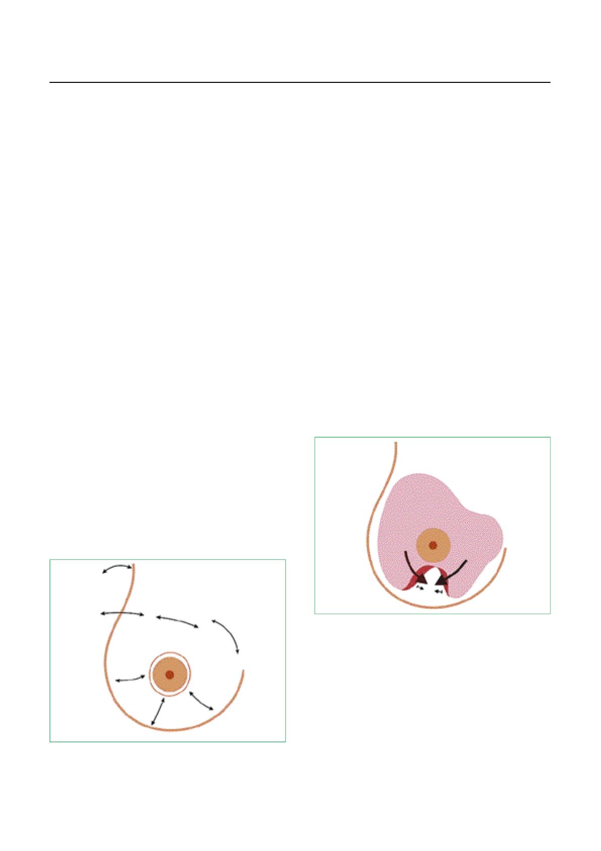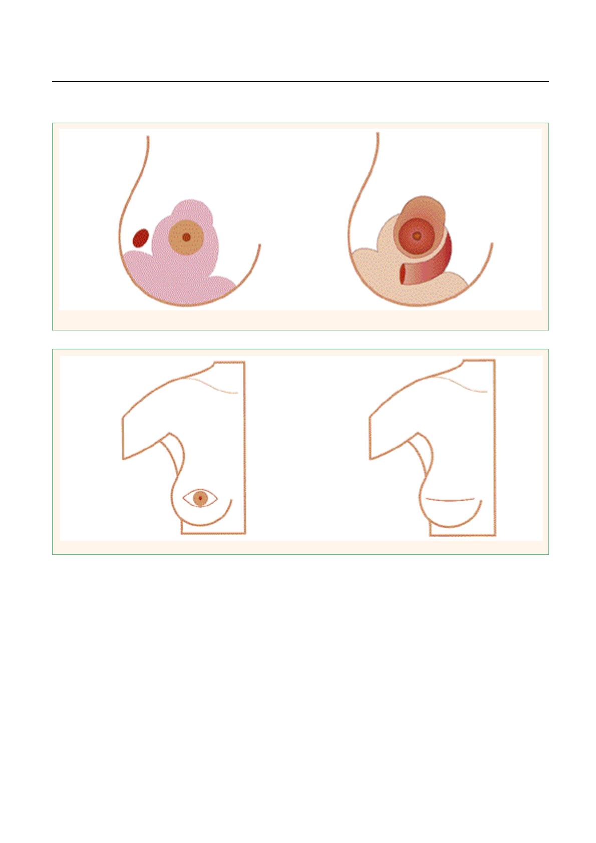 l’aréole vers le bas réalisant au pire un aspect en “bec d’aigle”. Dans