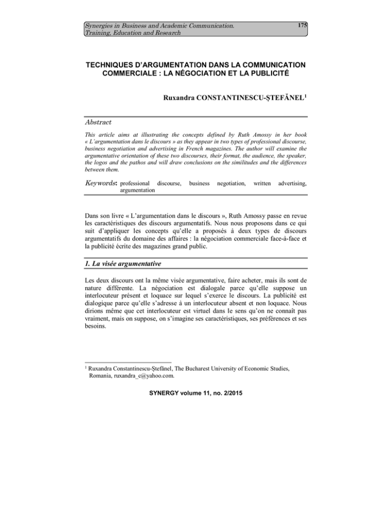 négociation commerciale où l’auditoire est présent. Elles prennent toujours