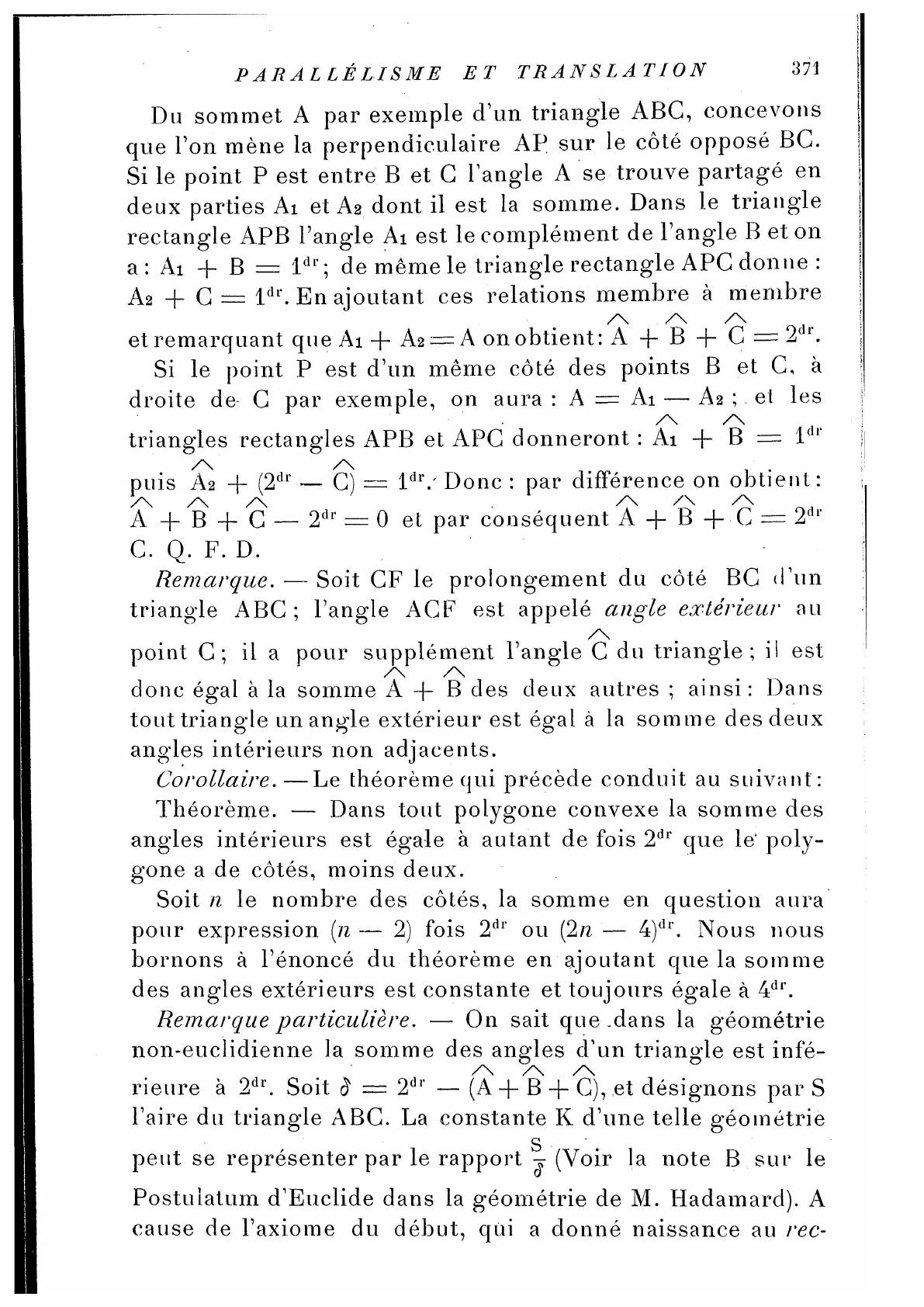 Théorème I. Si deux droites sont perpendiculaires àune 3e,