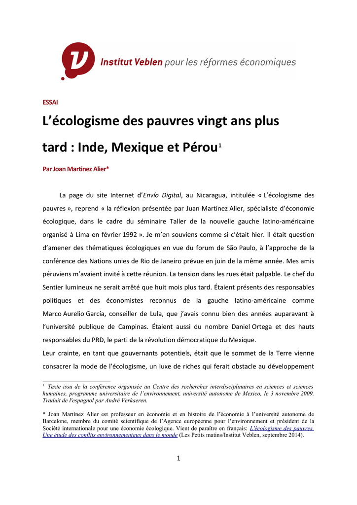ecologismo popular [« De l’économie écologique à l’écologisme des pauvres », NDT], réédité