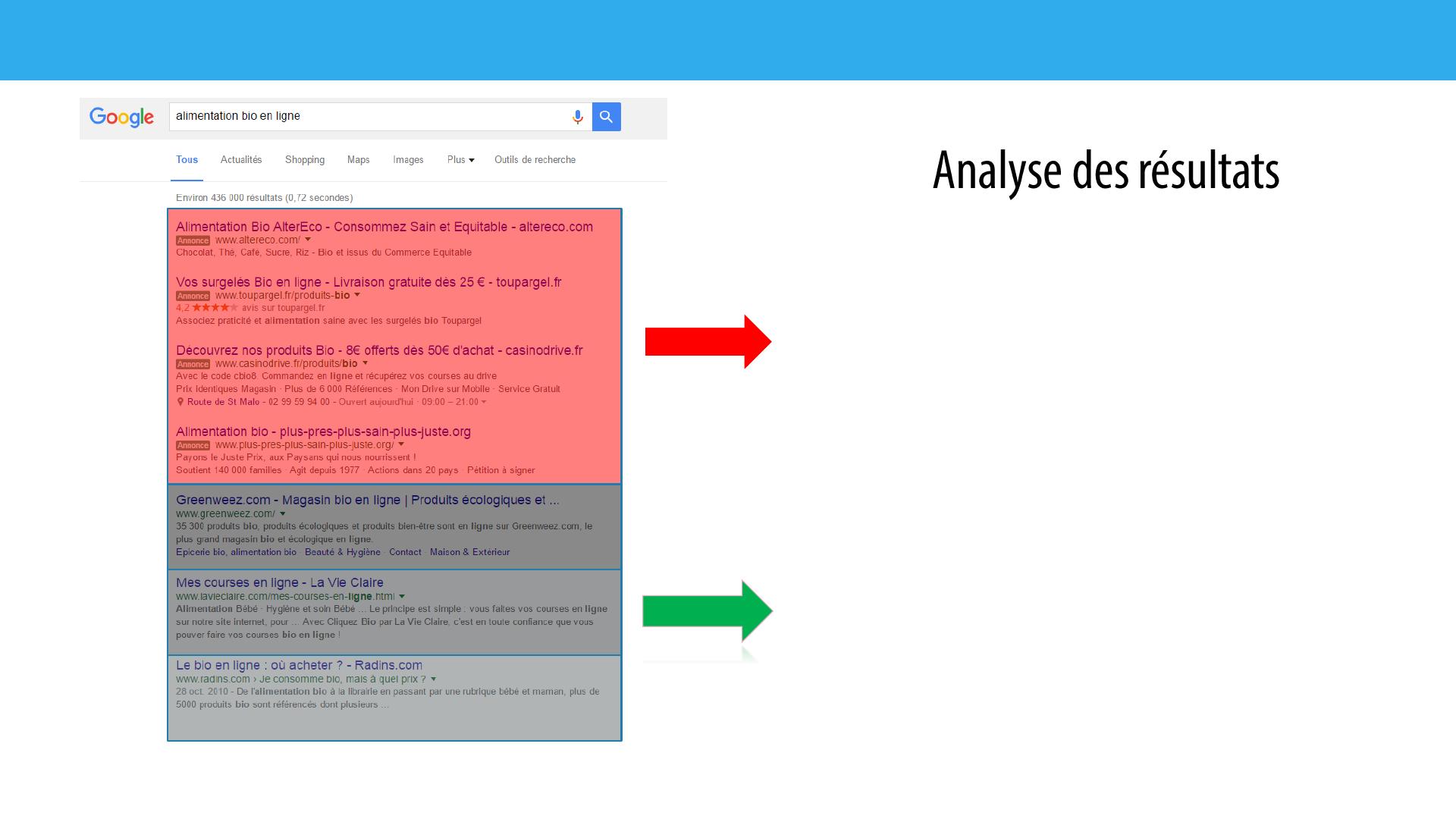 « alimentation bio en ligne ». Le problème, c’est qu’une telle recherche va engendrer des milliers de résultats et si votre site ne se