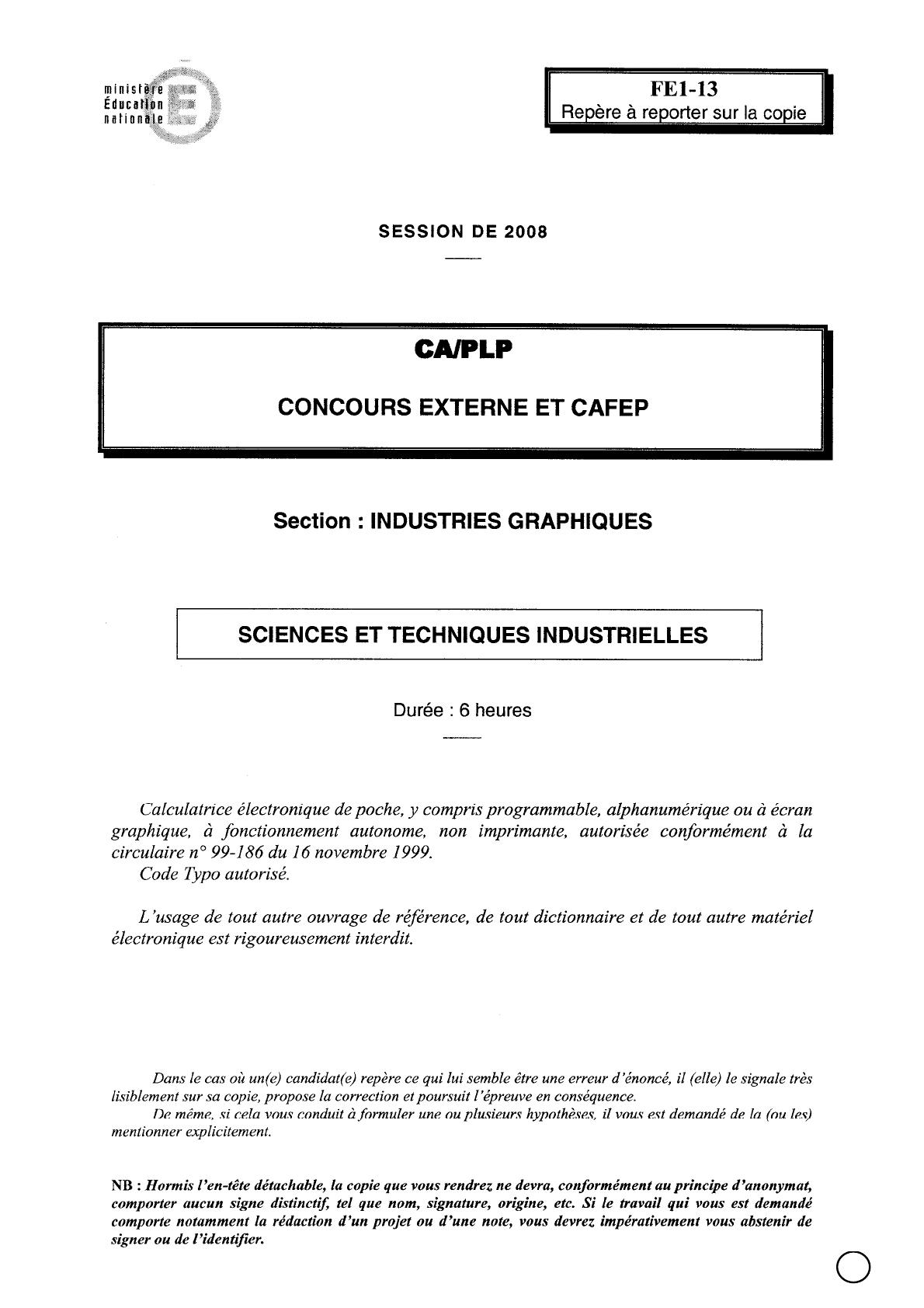 PLP EXTERNE — Session 2008 Épreuve d’admissibilité 2/6