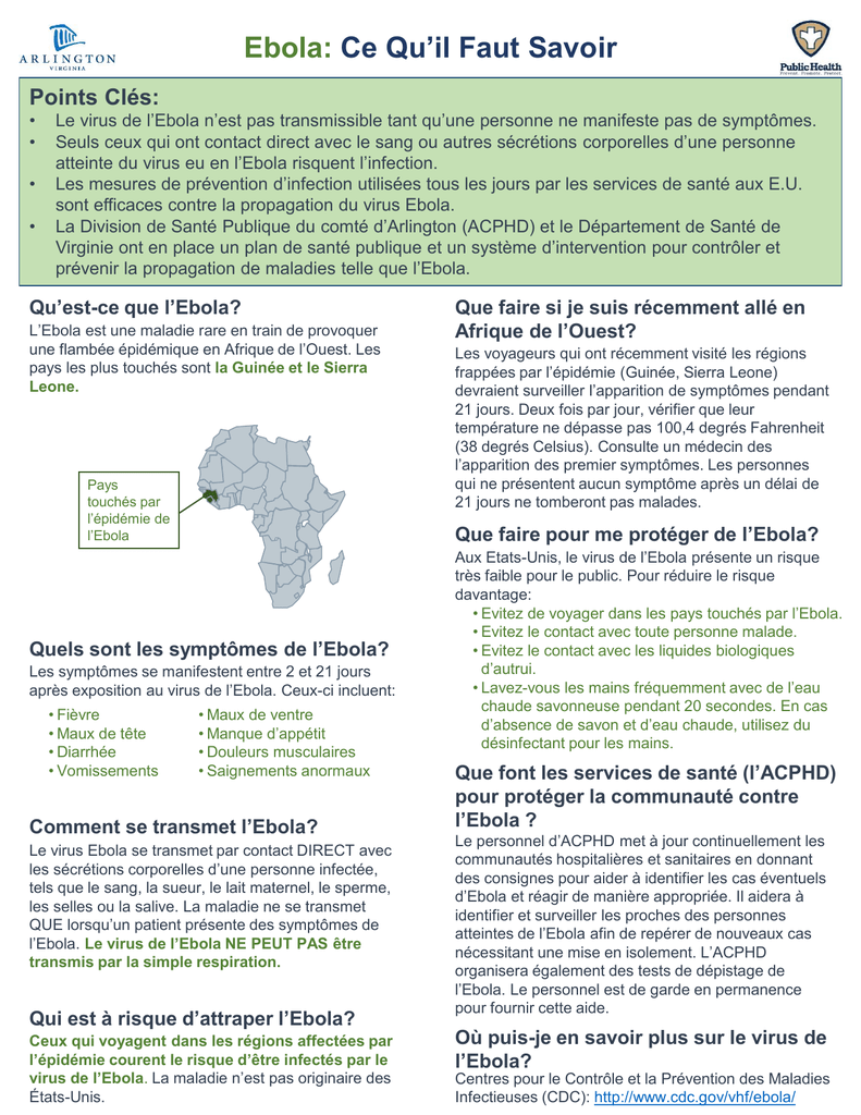 •La Division de Santé Publique du comté d’Arlington (ACPHD) et le Département de Santé de