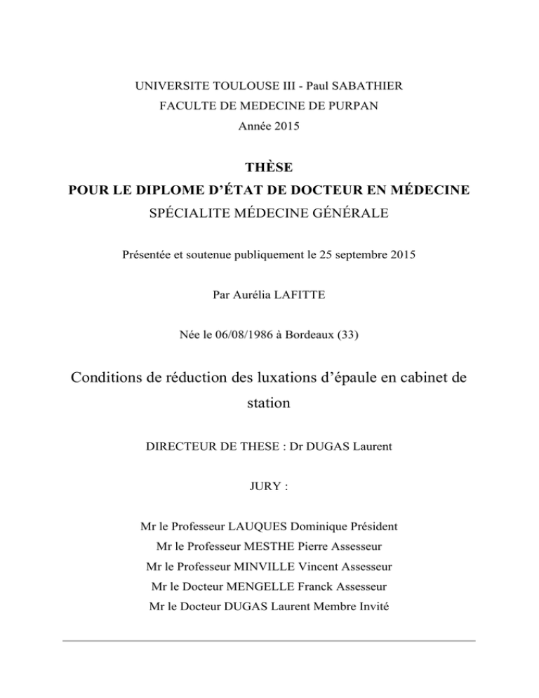 DIRECTEUR DE THESE : Dr DUGAS Laurent