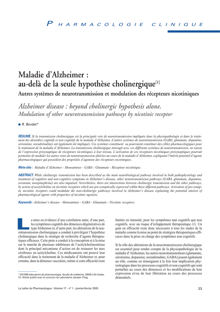 désordres cognitifs de la maladie d’Alzheimer. Sur le plan des