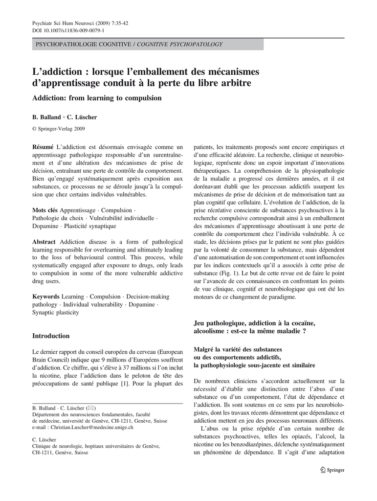 décision. Autrement dit, si la physiopathologie de l’addic-
