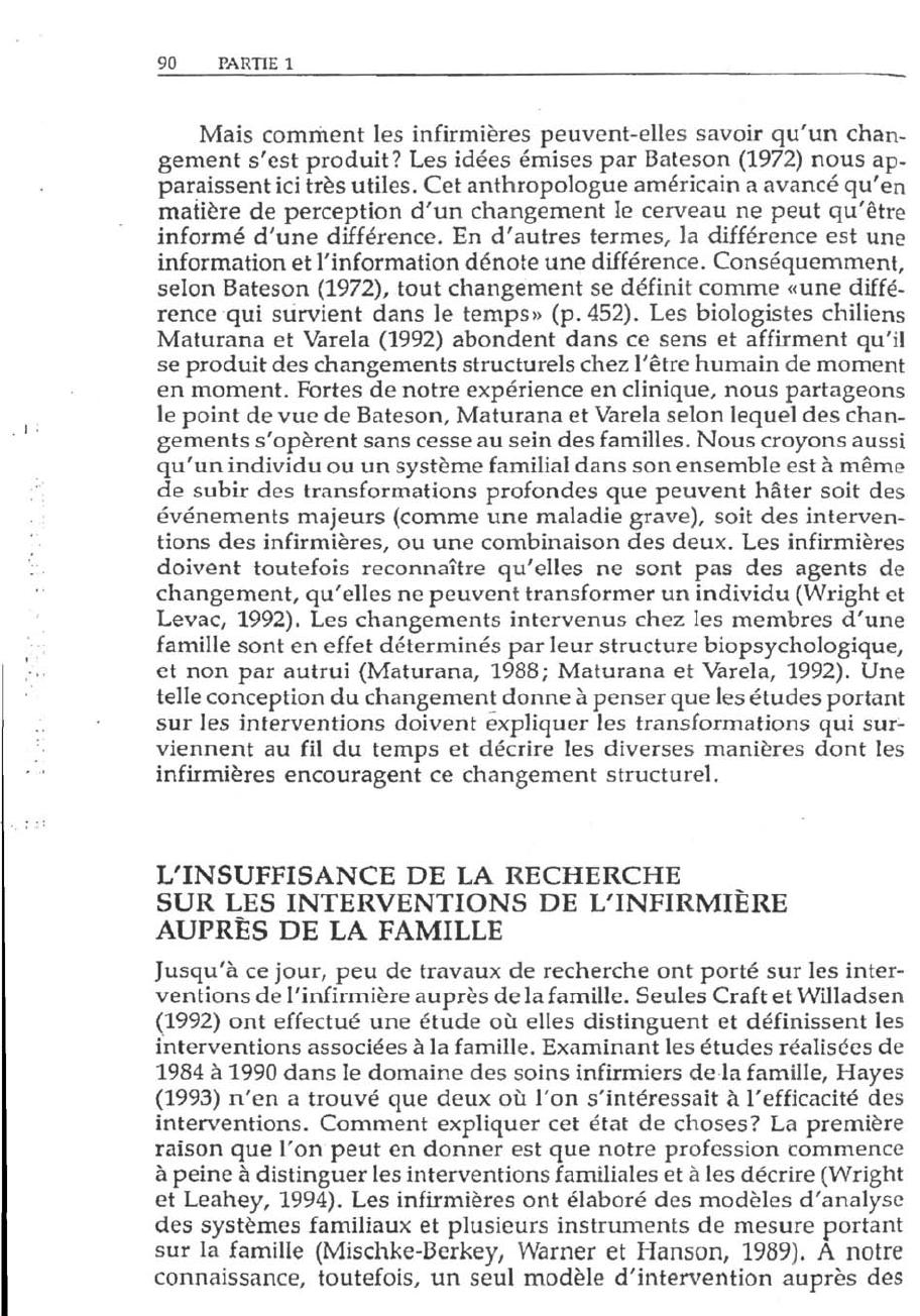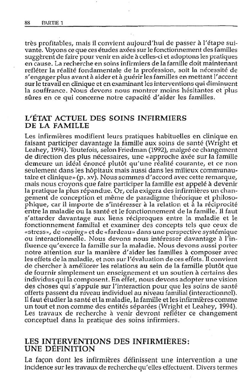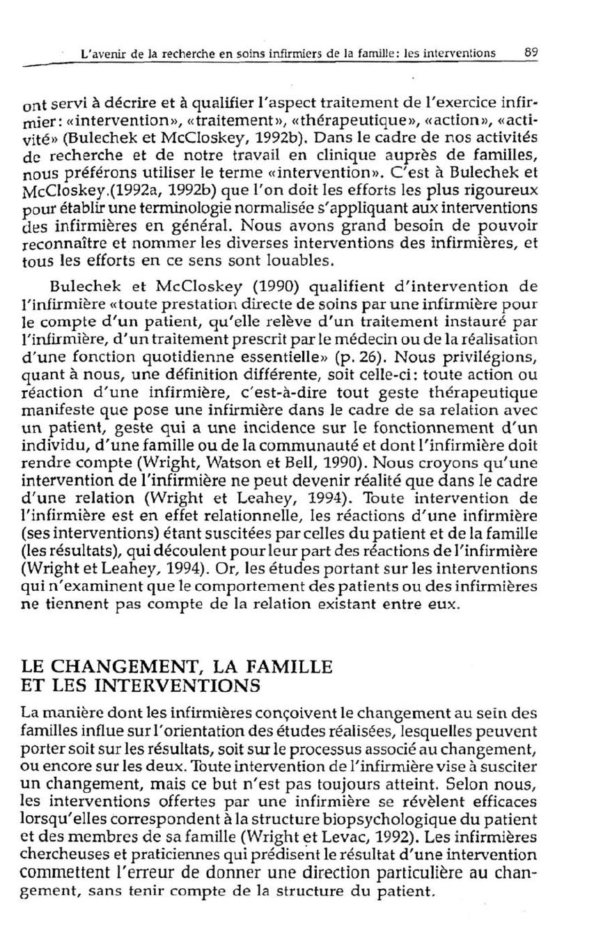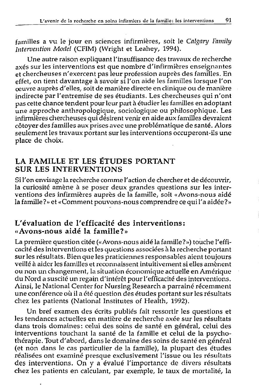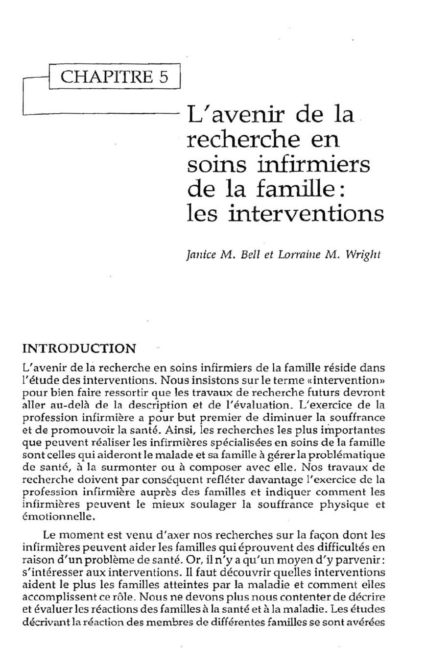 (Wright et Leahey, 1994). Or, les etudes portant sur les interventions