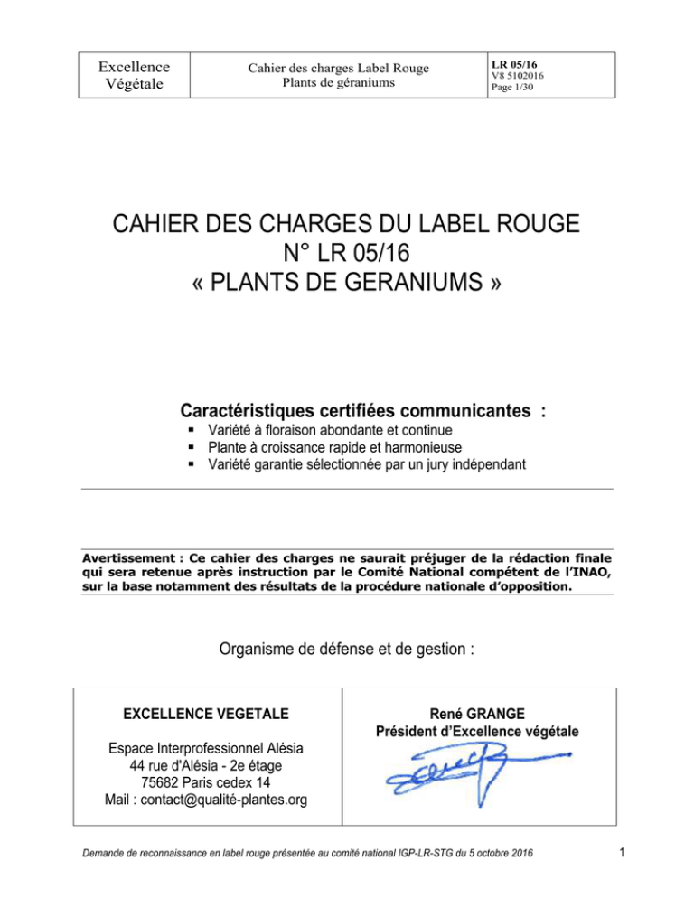 Demande de reconnaissance en label rouge présentée au comité national IGP-LR-STG du 5 octobre 2016