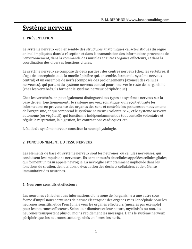 traitement de l’information, est largement utilisé par le système nerveux pour intégrer un
