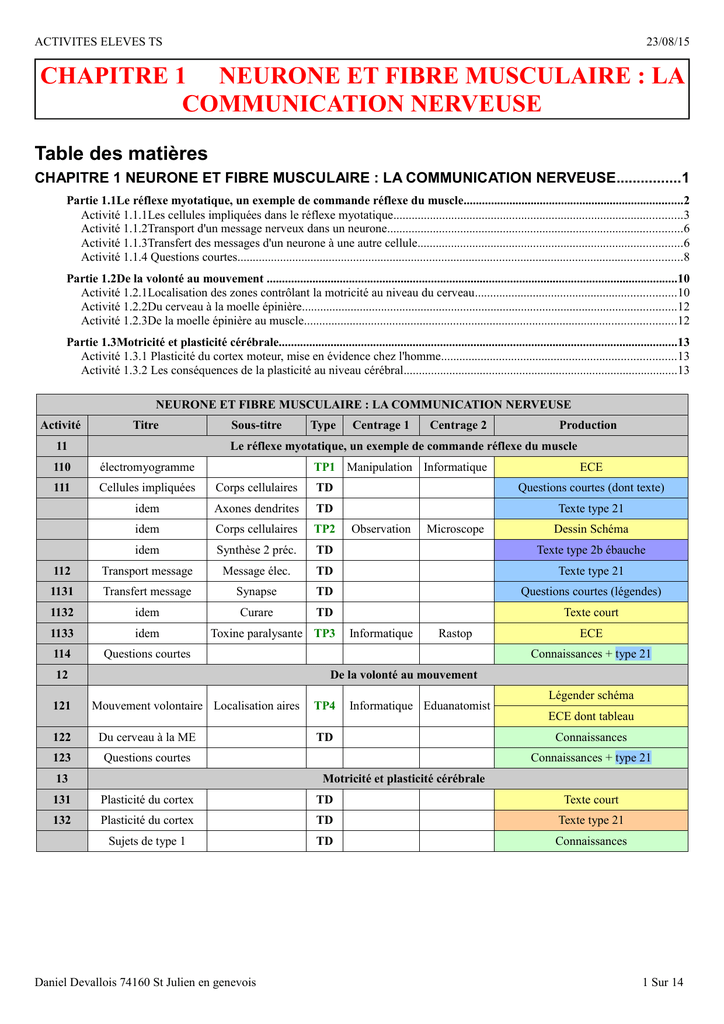 Activité 1.1.0 Les phénomènes électriques musculaires