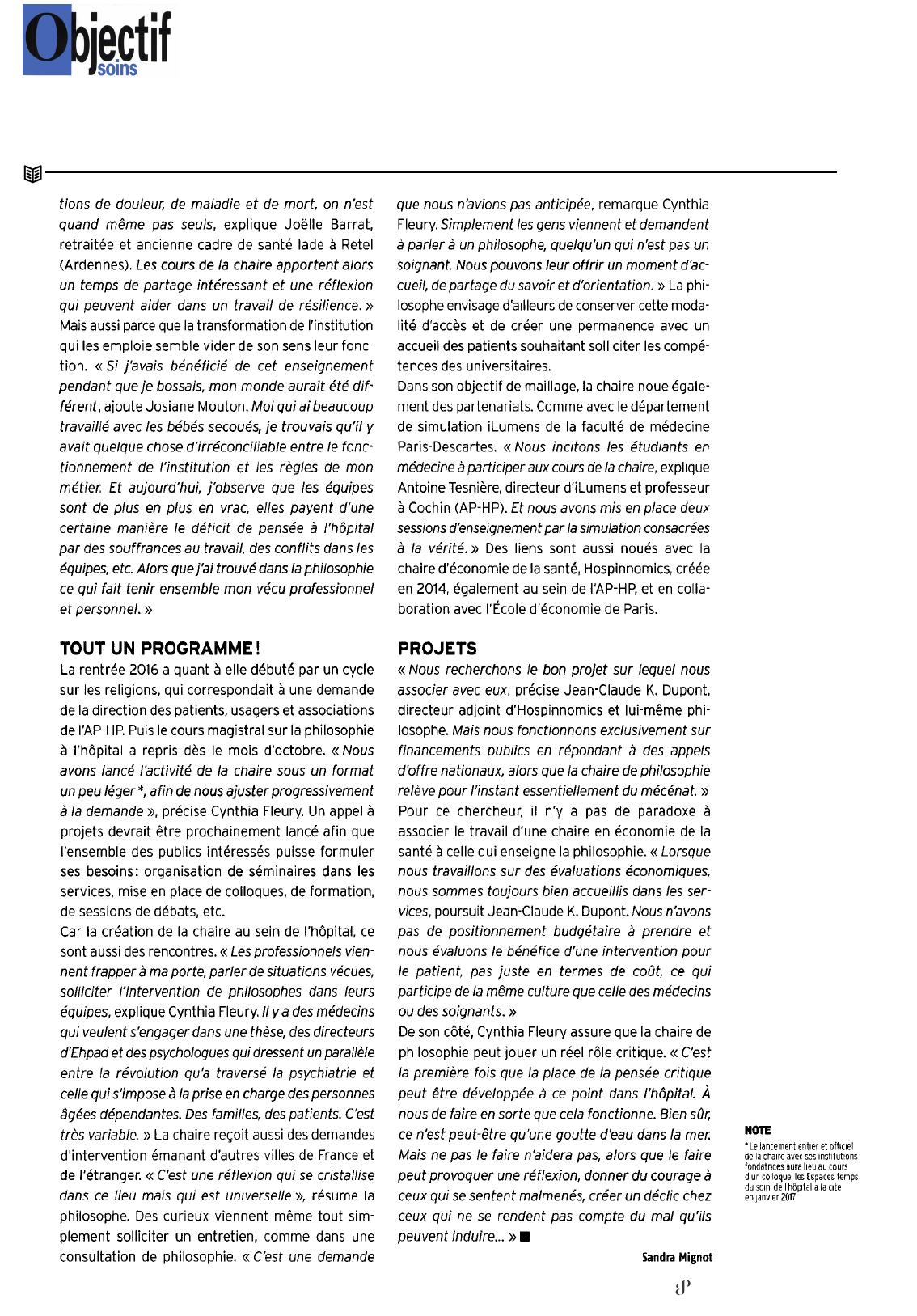 j'ai découvert Cynthia Fleury et la chaire » De janvier