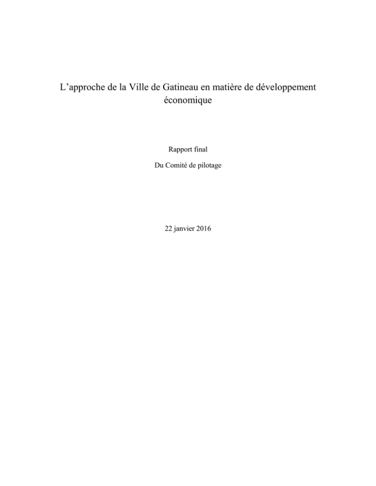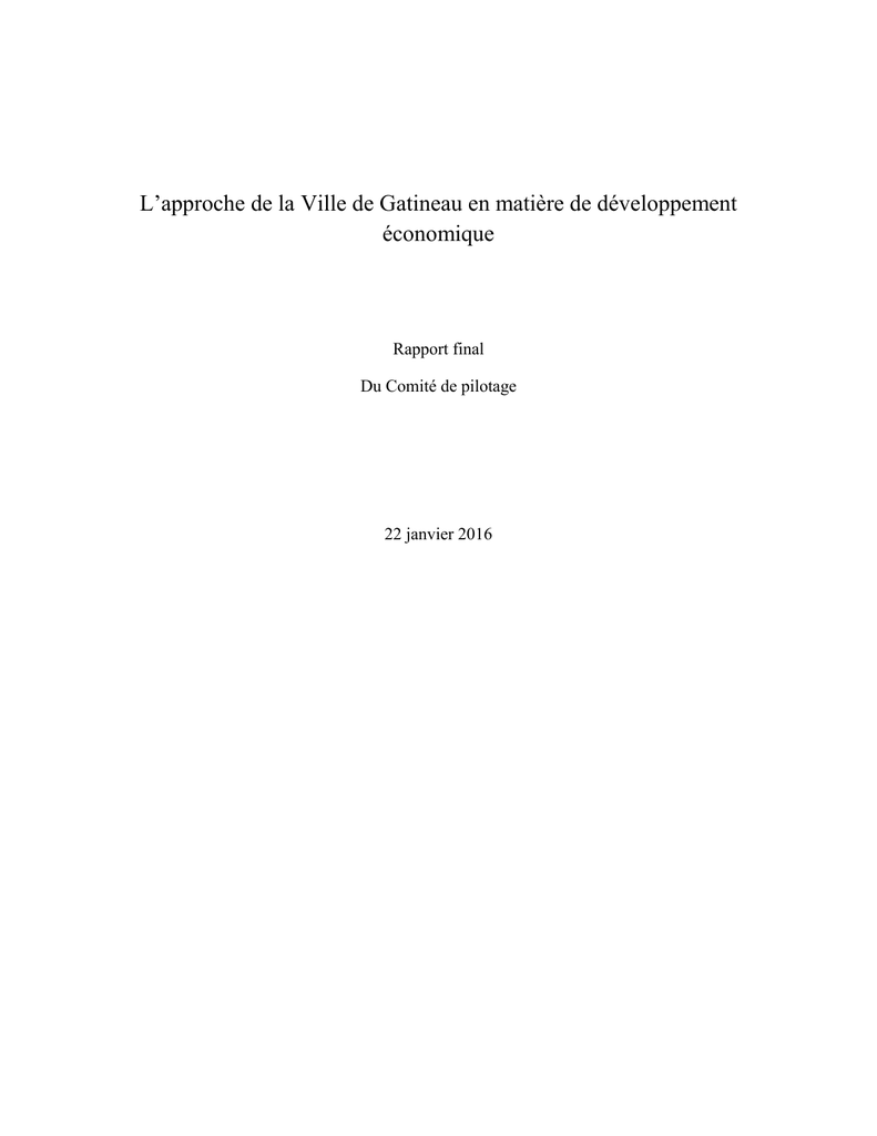 L’approche de la Ville de Gatineau en matière de développement économique Comité de pilotage