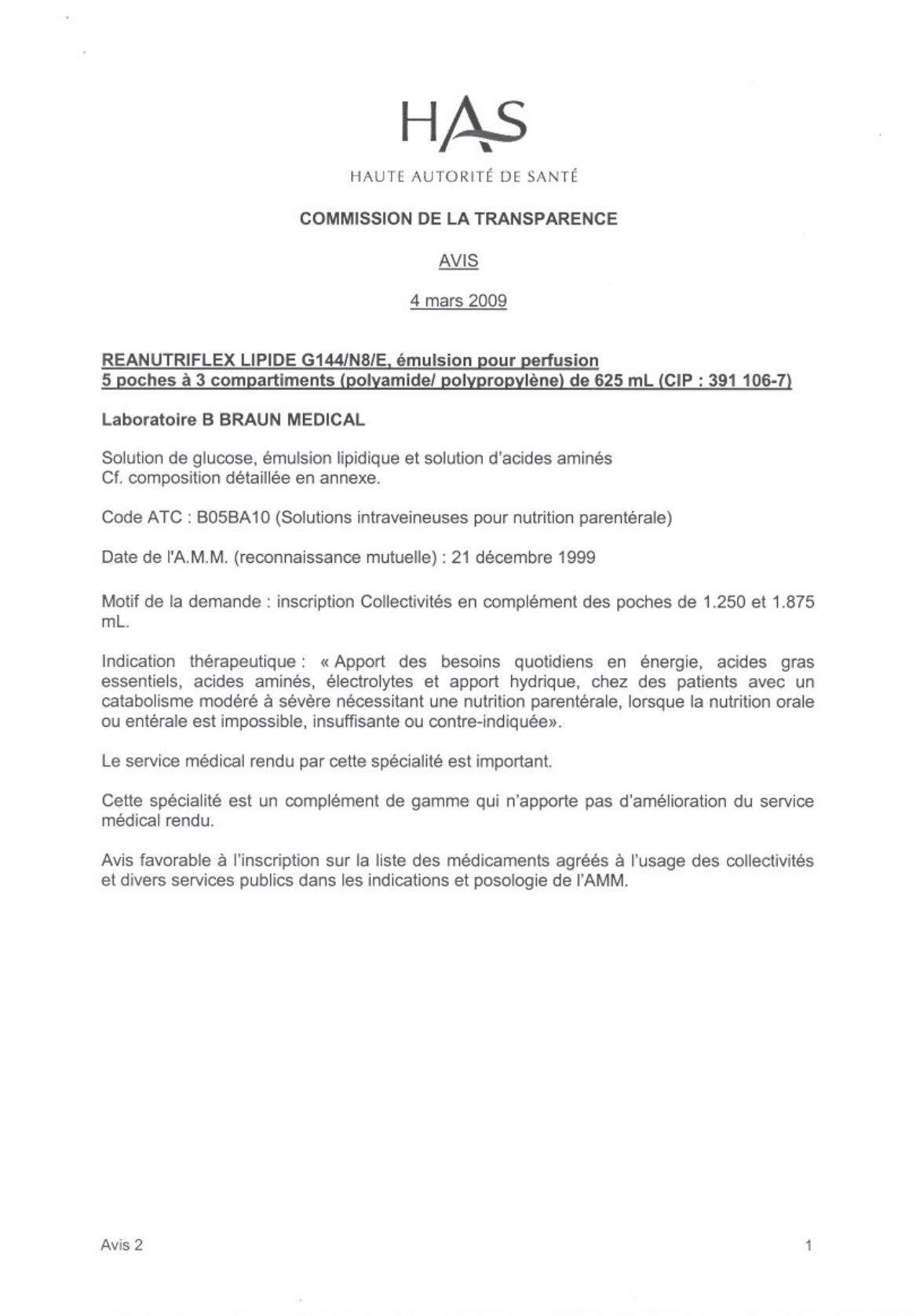 NUTRIFLEX LIPIDE G 144/N 8/E. émulsion pour perfusion