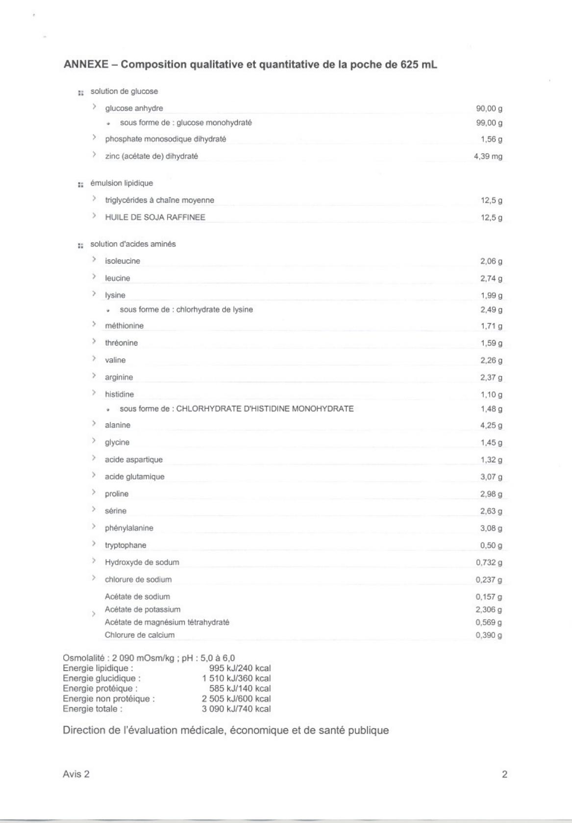 d'émulsion lipidique + 750 ml de solution de glucose avec électrolytes) en poche