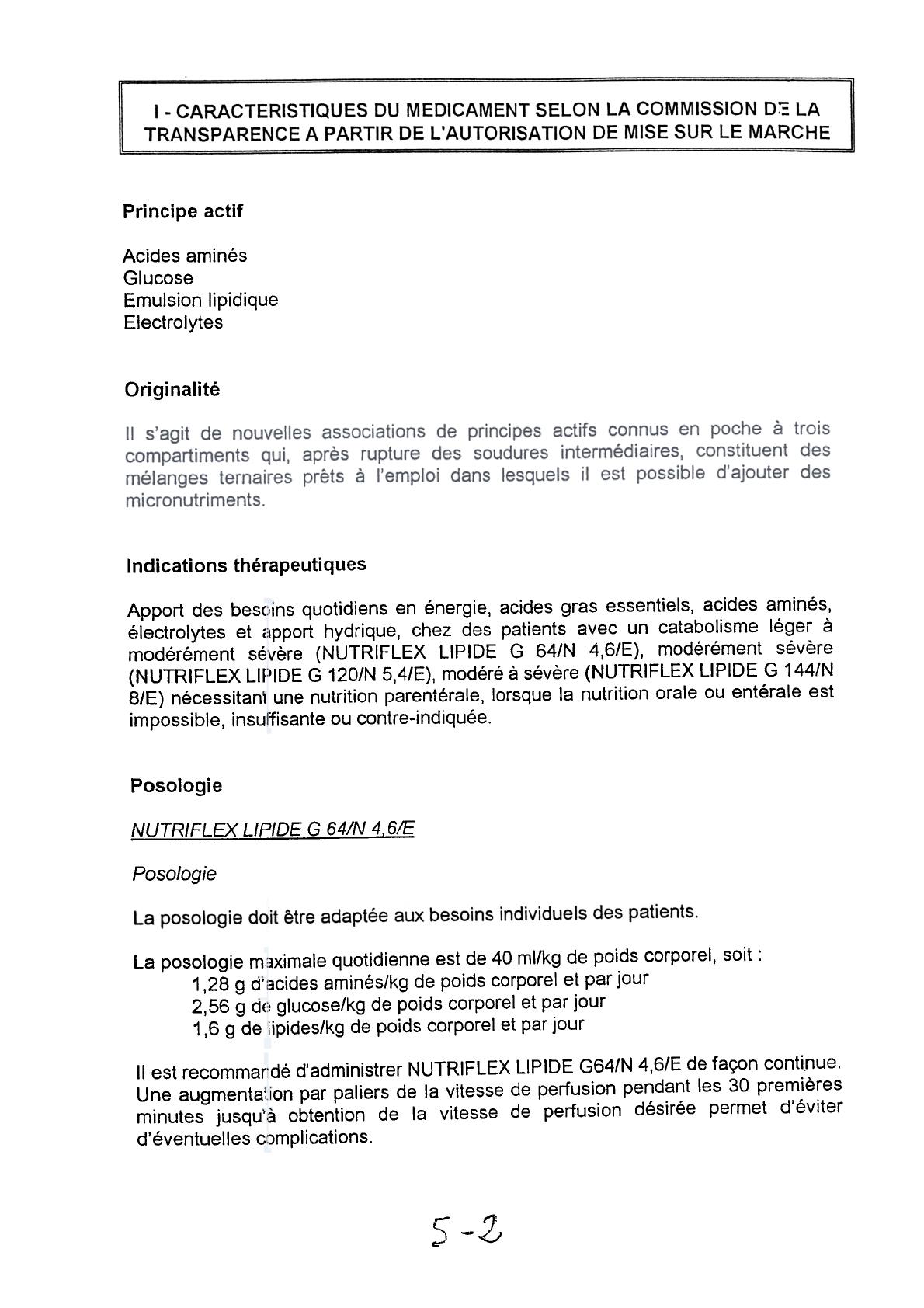 NUTRIFLEX LIPIDE G 64/N 4.6/E. émulsion pour perfusion