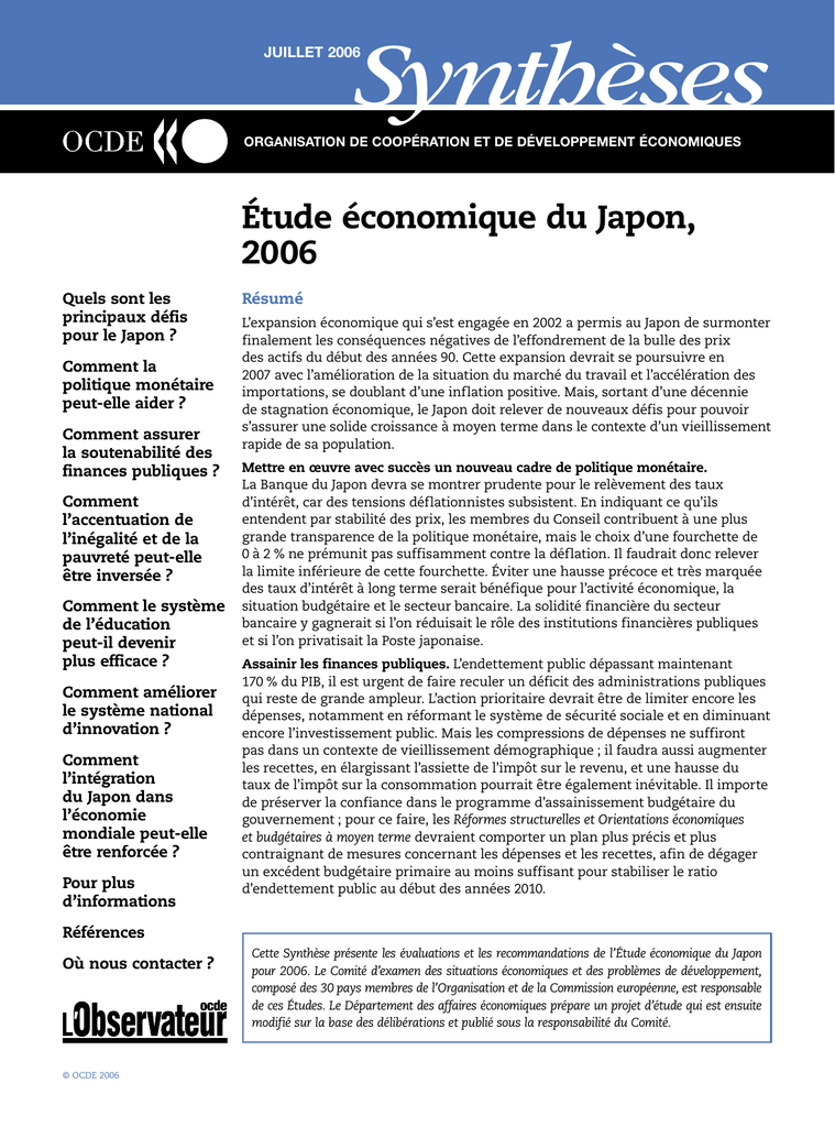 ÉTUDE ÉCONOMIQUE DU JAPON, 2006
