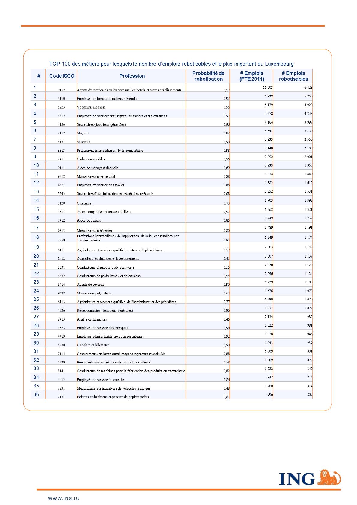 de la population active au Luxembourg. Dès lors, la robotisation pourrait contrer les effets