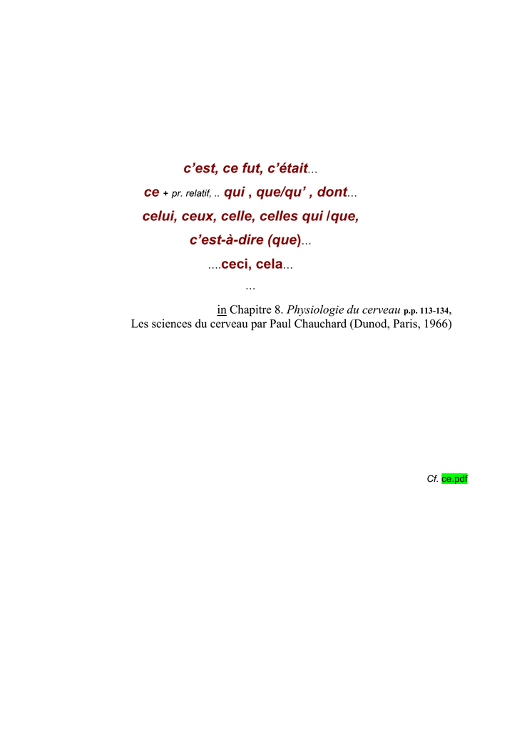 in Chapitre 8. Physiologie du cerveau 113-134, Les sciences du cerveau par Paul Chauchard (Dunod, Paris, 1966)