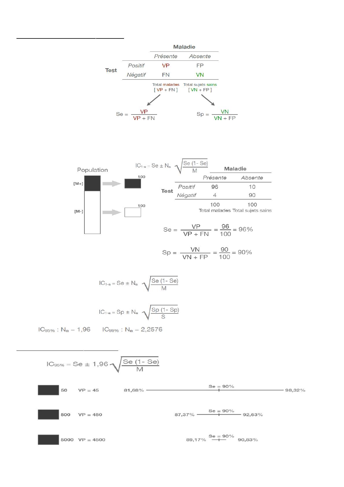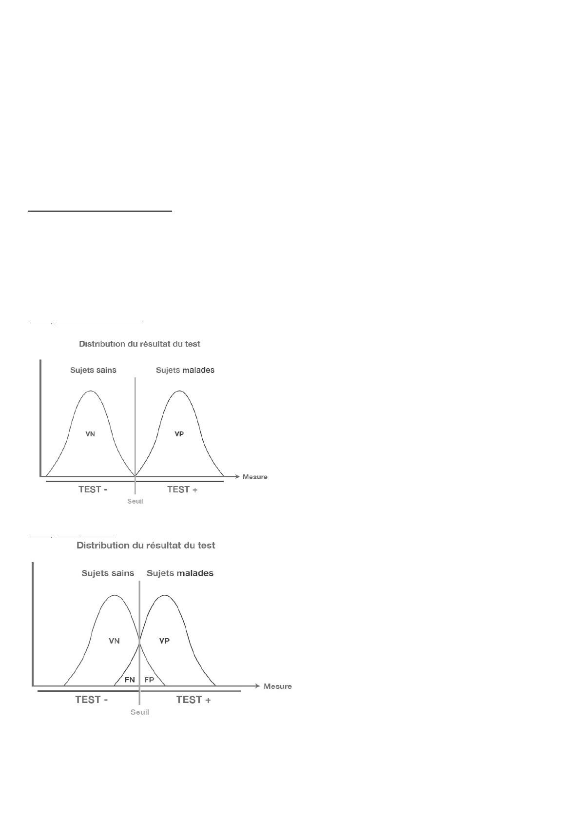 test positif et des faux négatifs (FN) qui sont des malades se retrouvant dans la zone test négatif.