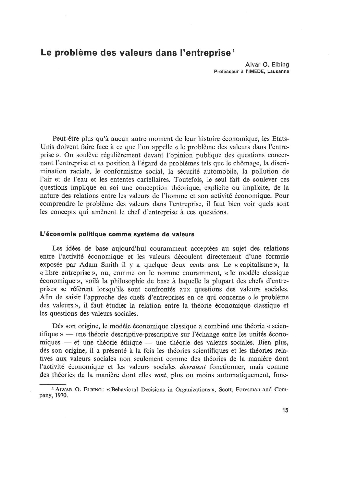 pas justifié de traiter l'ensemble du problème des valeurs dans l'entreprise unique¬