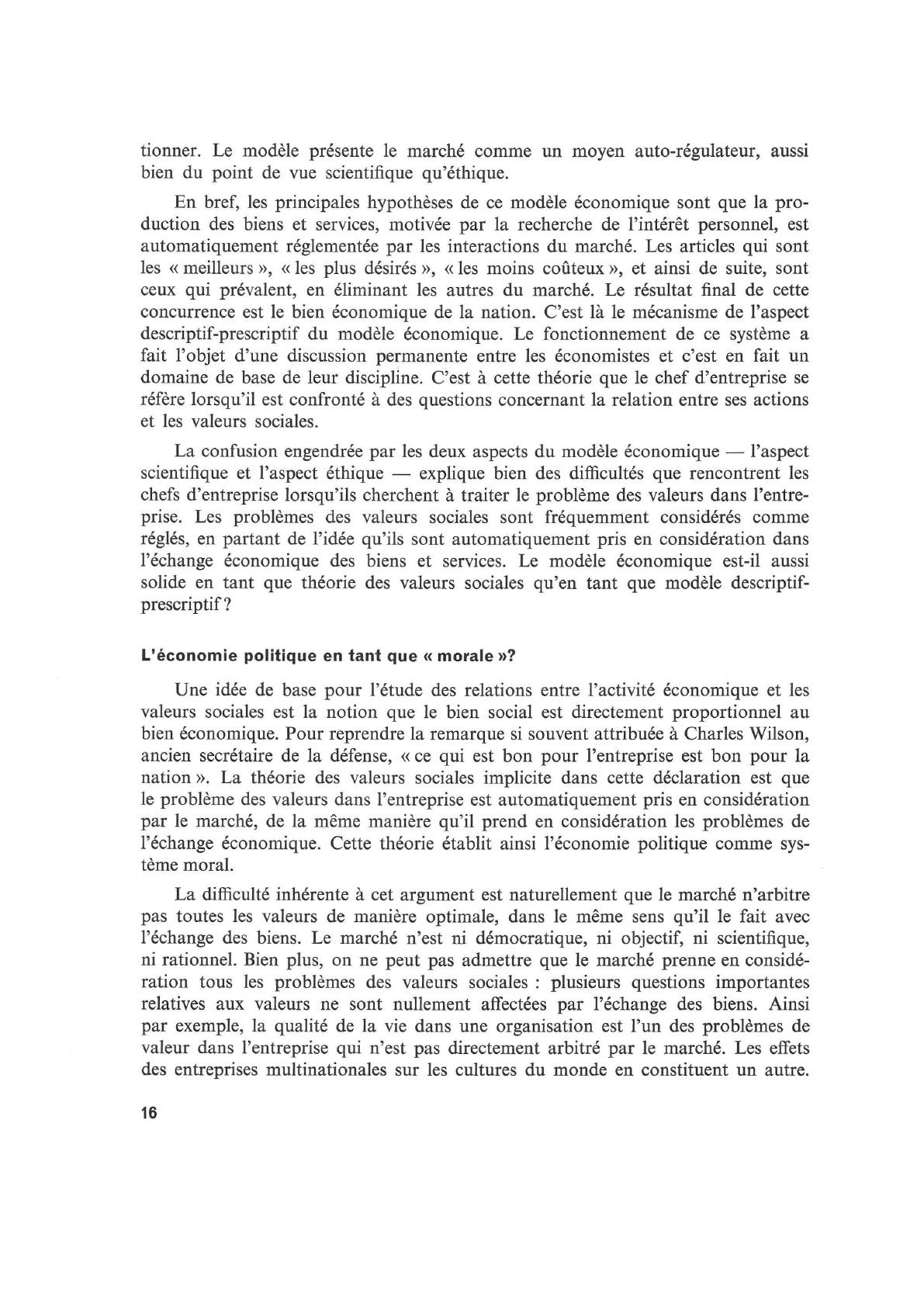 économique assure, de par sa nature, des valeurs morales ou sociales, ne résiste