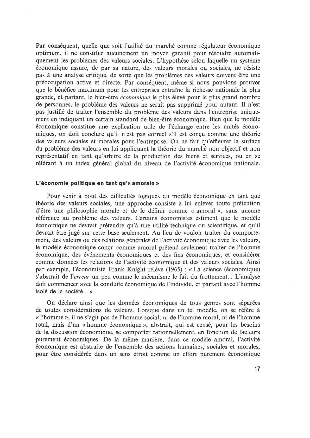 purement économiques. De la même manière, dans ce modèle amoral, l'activité