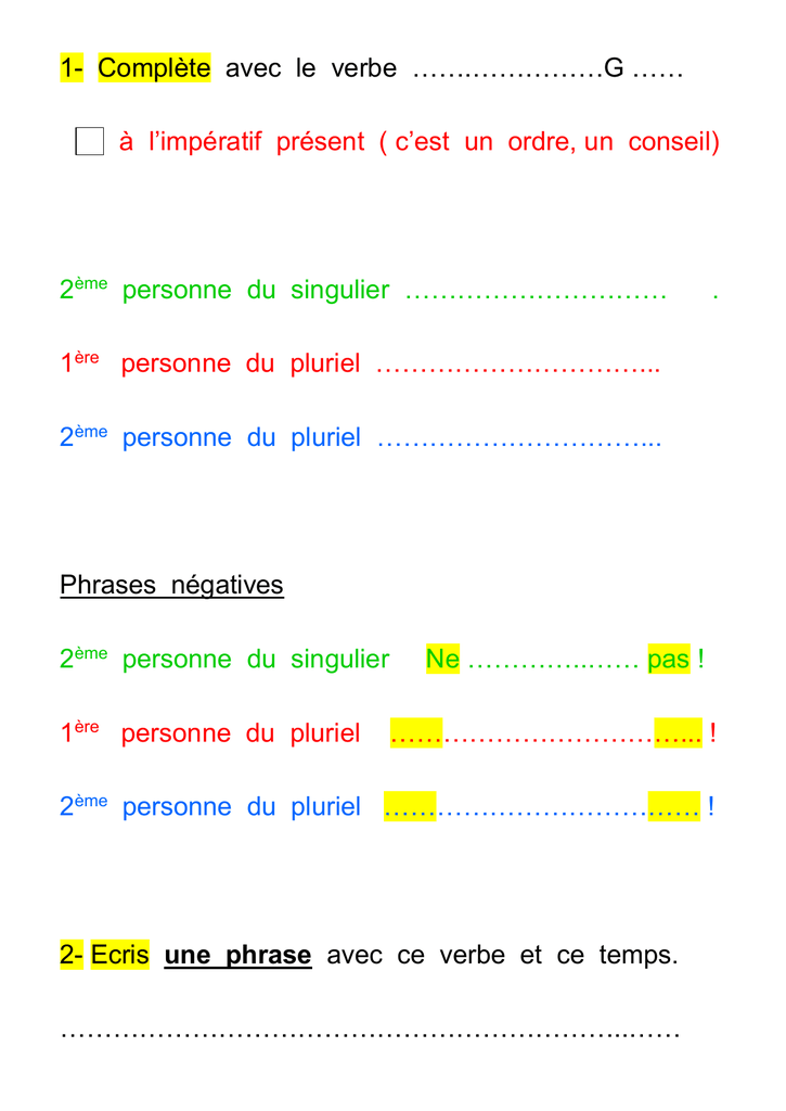 2- Ecris une phrase avec ce verbe et ce temps.