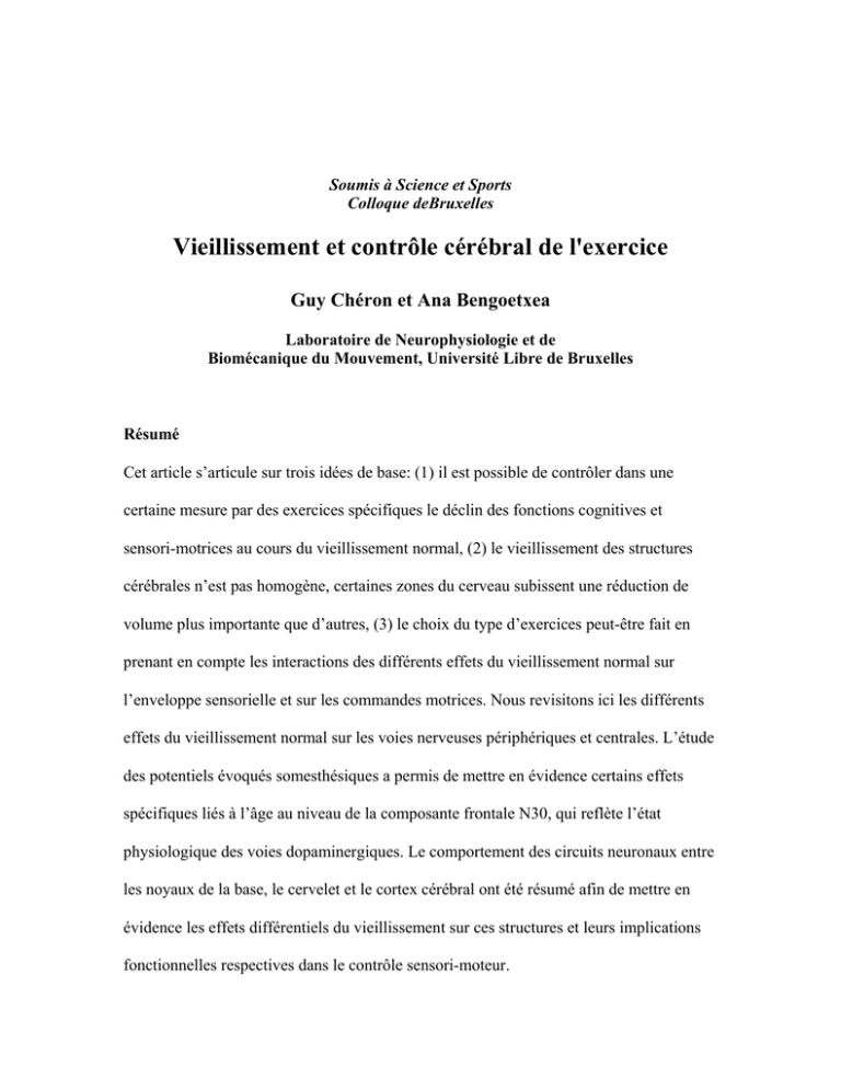 sensori-motrices et cognitives au cours du vieillissement normal en respectant les
