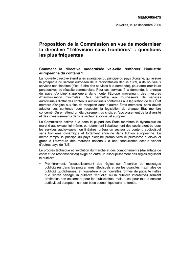 provoque chez les téléspectateurs. La nouvelle directive prévoit néanmoins que les