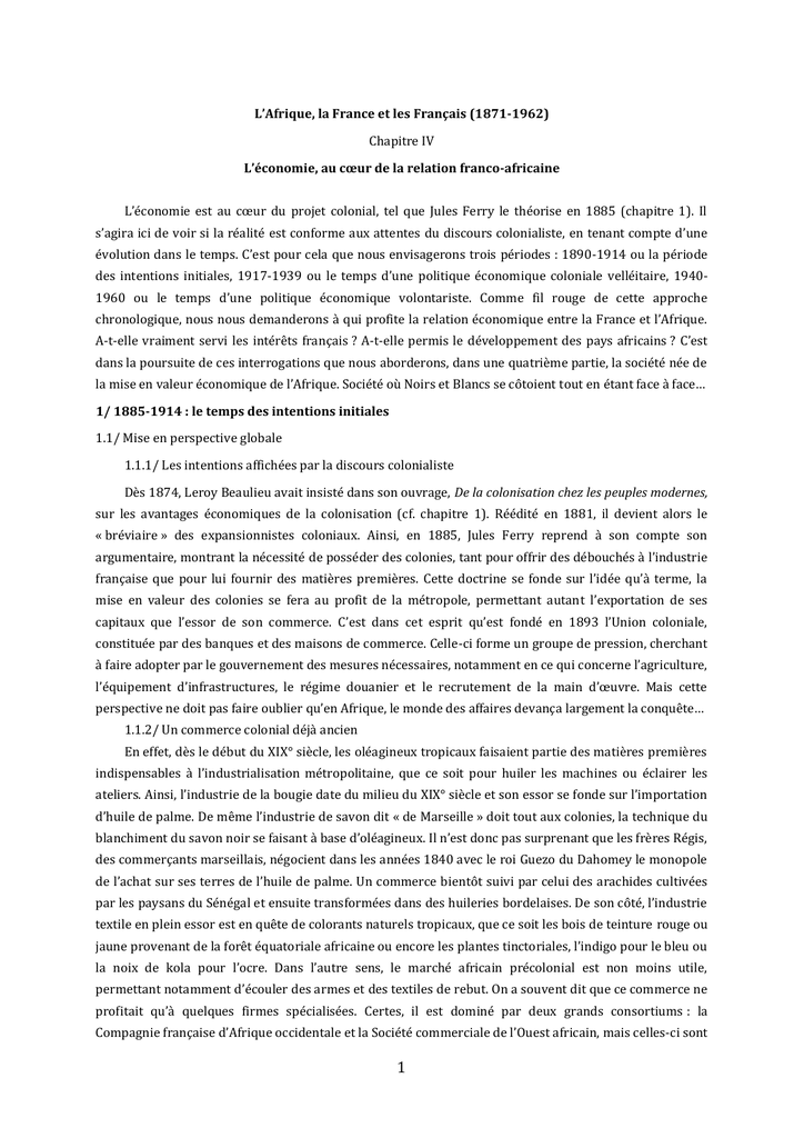démontré que dès la fin du XIX° siècle, l’économie française vivait au rythme de son empire et que celui-ci