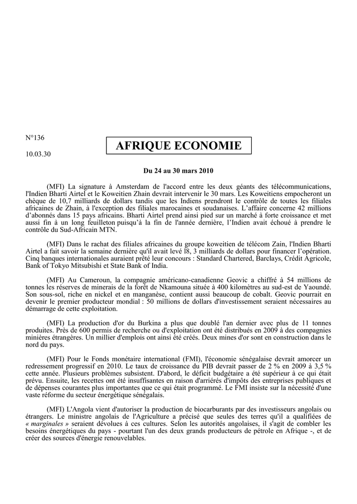 l'Indien Bharti Airtel et le Koweitien Zhain devrait intervenir le 30 mars. Les Koweitiens empocheront un