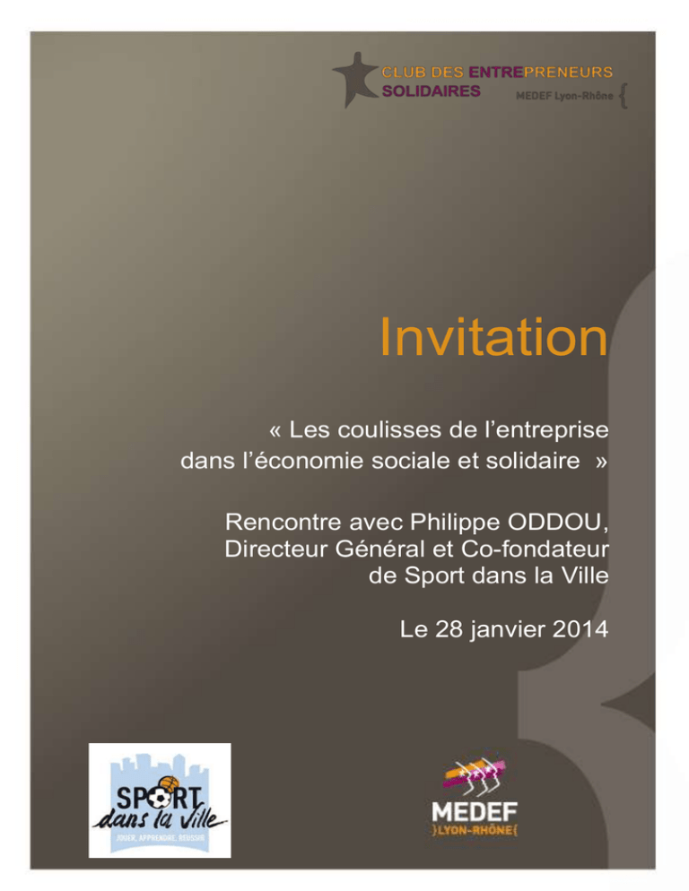 Le Club des Entrepreneurs Solidaires du Medef Lyon-Rhône est heureux de vous inviter à